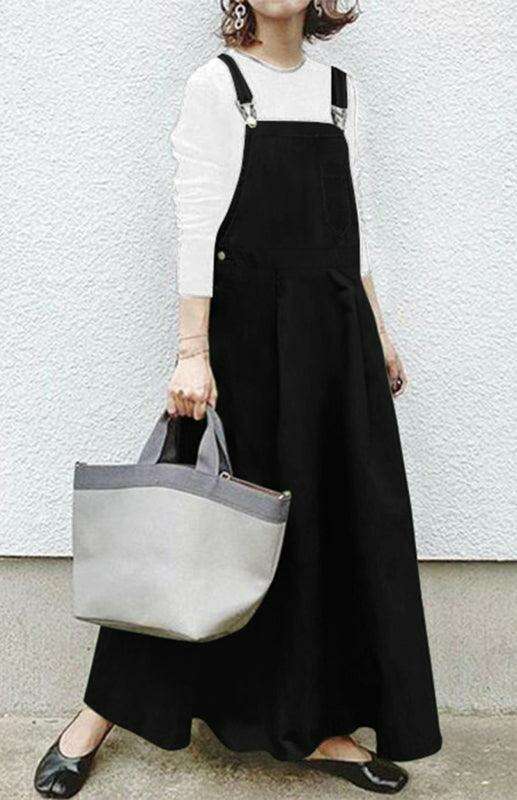 This solid color suspender skirt not only offers a simple yet stylish silhouette but also a plethora of styling options. Whether dressing it up for brunch or keeping it casual for a day out, this skirt adapts to your needs.