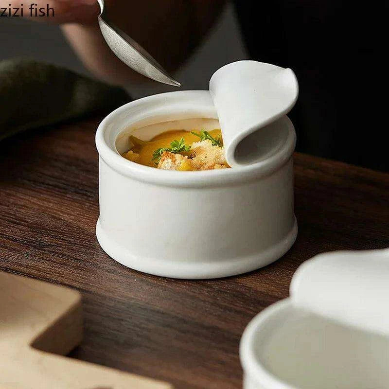 This bowl set is more than just a functional kitchen tool; it serves as a stunning statement piece that will leave a lasting impression on your guests. Whether hosting a dinner party or enjoying a quiet meal at home, the Modern Canned Shape Ceramic Dessert and Sauce Bowl Set will elevate your dining experience and make every meal feel special.