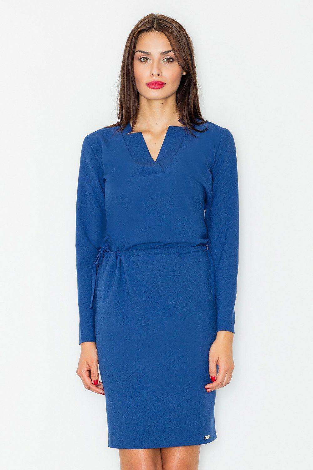 Chic Daytime Sophistication: Long Sleeve Polyester Dress with Waist Tie - Model 77065 - Très Elite