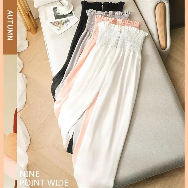 Chic High-Waisted Chiffon Ankle Pants for Summer Elegance