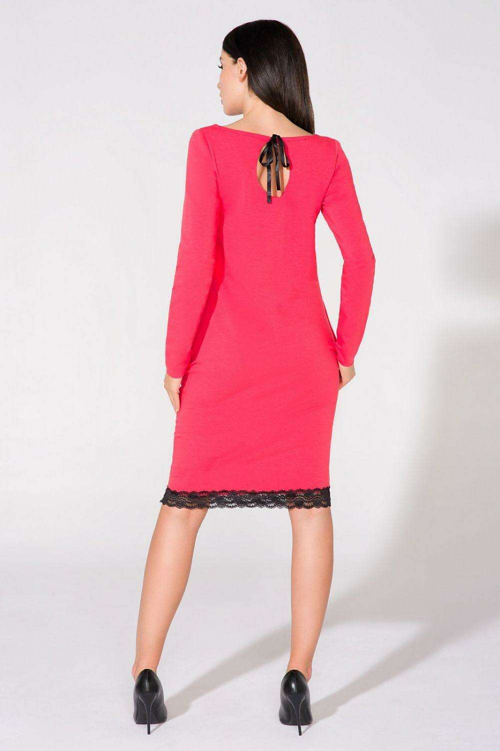 Elevate your style game with our Chic Lace-Trimmed Sweatshirt Dress with Satin Bow Accent, model 61737 Tessita. Experience the perfect blend of fashion and comfort wherever you go.