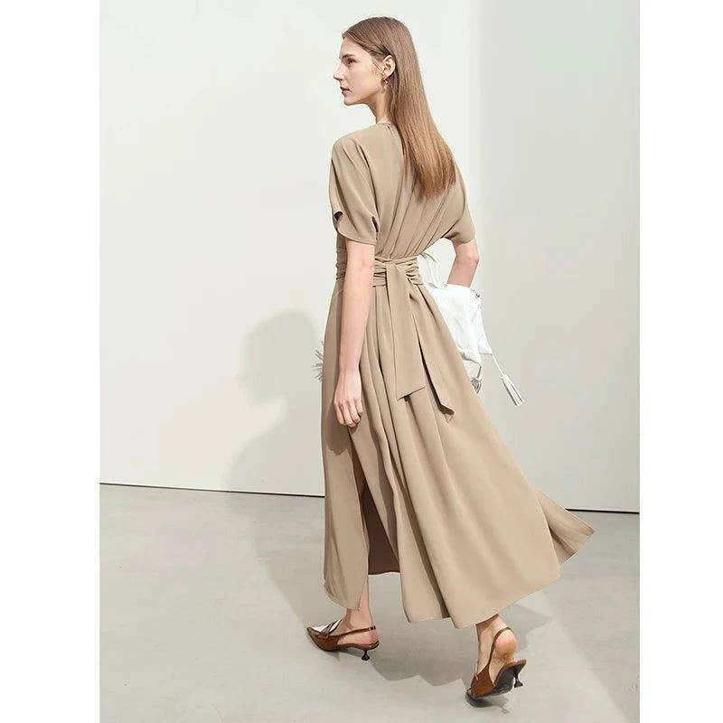 Minimalism Summer Elegant V-neck Lace-up Pleated Dress for Women