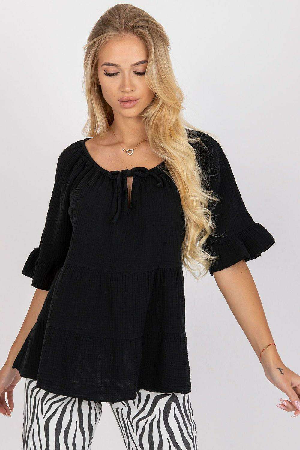 Introducing the Whimsy Cotton Ruffle Blouse, a delightful addition to your wardrobe that effortlessly combines style and comfort. This blouse is designed to elevate your everyday outfits with its charming details and versatile appeal.