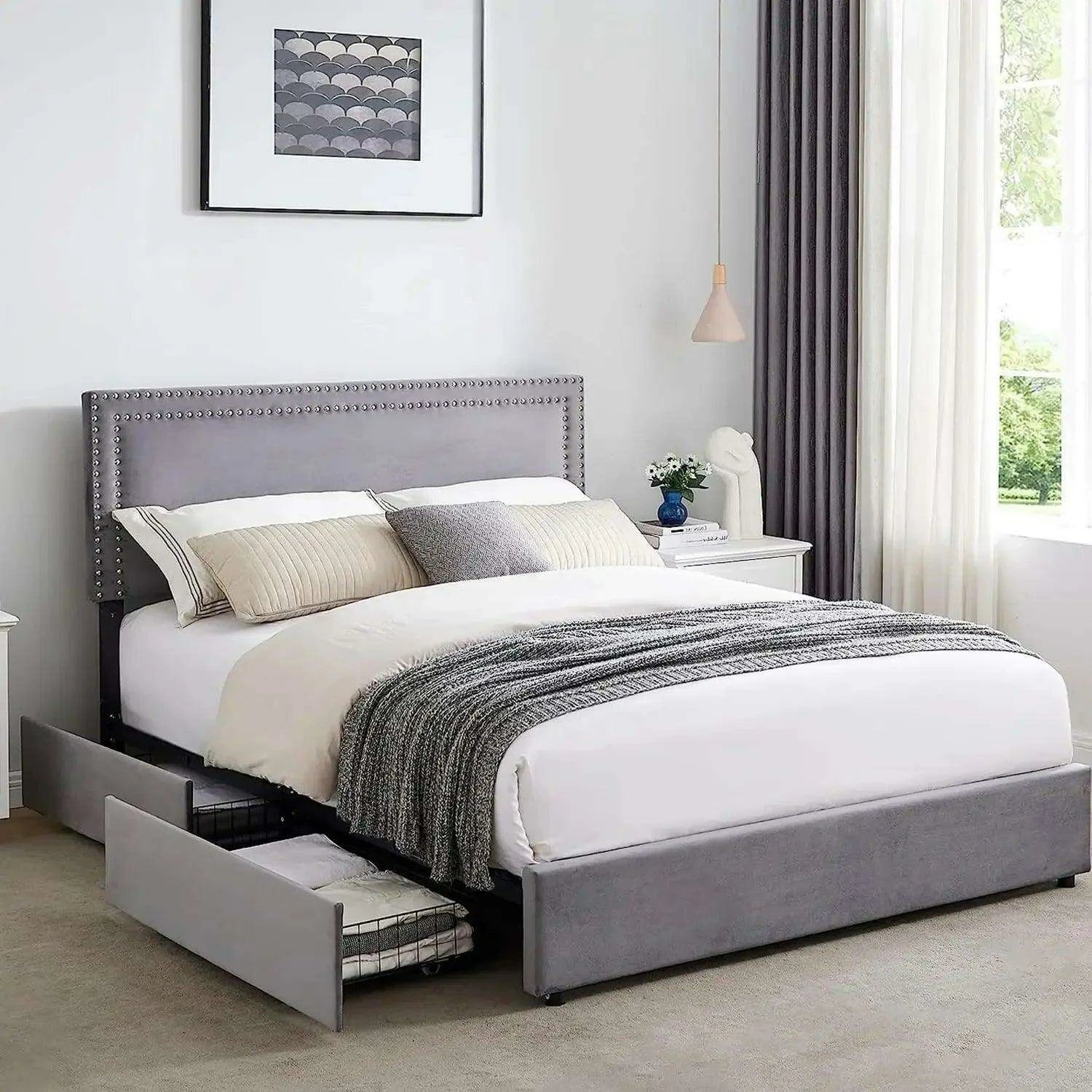 Chic Velvet Storage Bed with Adjustable Headboard and Spacious Drawers