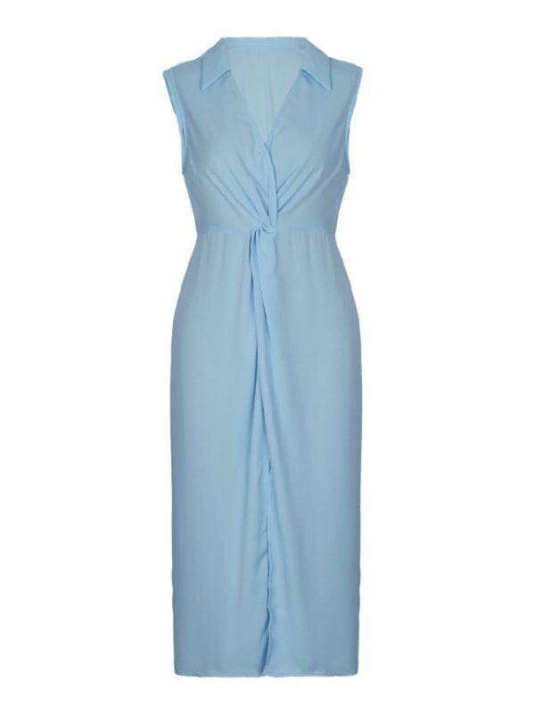 Chic Vibe Twist-Detail Sleeveless Summer Dress with Stylish Lapel V-Neck - Très Elite
