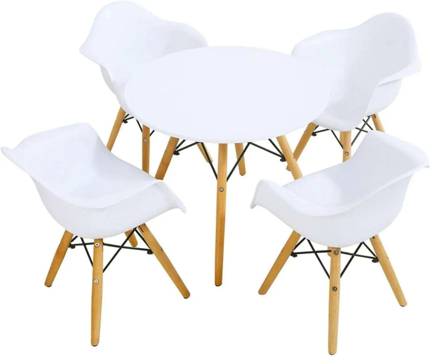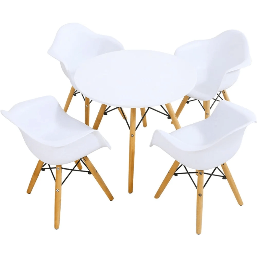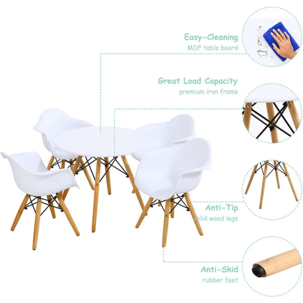 • Complete Set: Includes a round table and four comfortable armchairs, ideal for group activities.