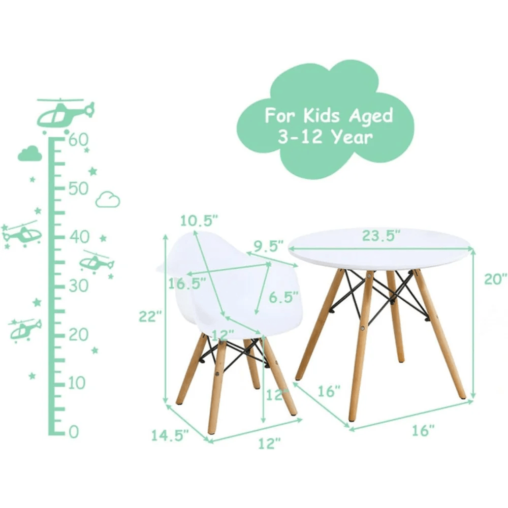 Transform your child's playtime into a vibrant adventure with our Mid-Century Kids' Table and Chairs. This stylish and functional furniture set is designed for children aged 3 to 12 years old, providing the perfect space for a variety of activities while inspiring creativity and fun.