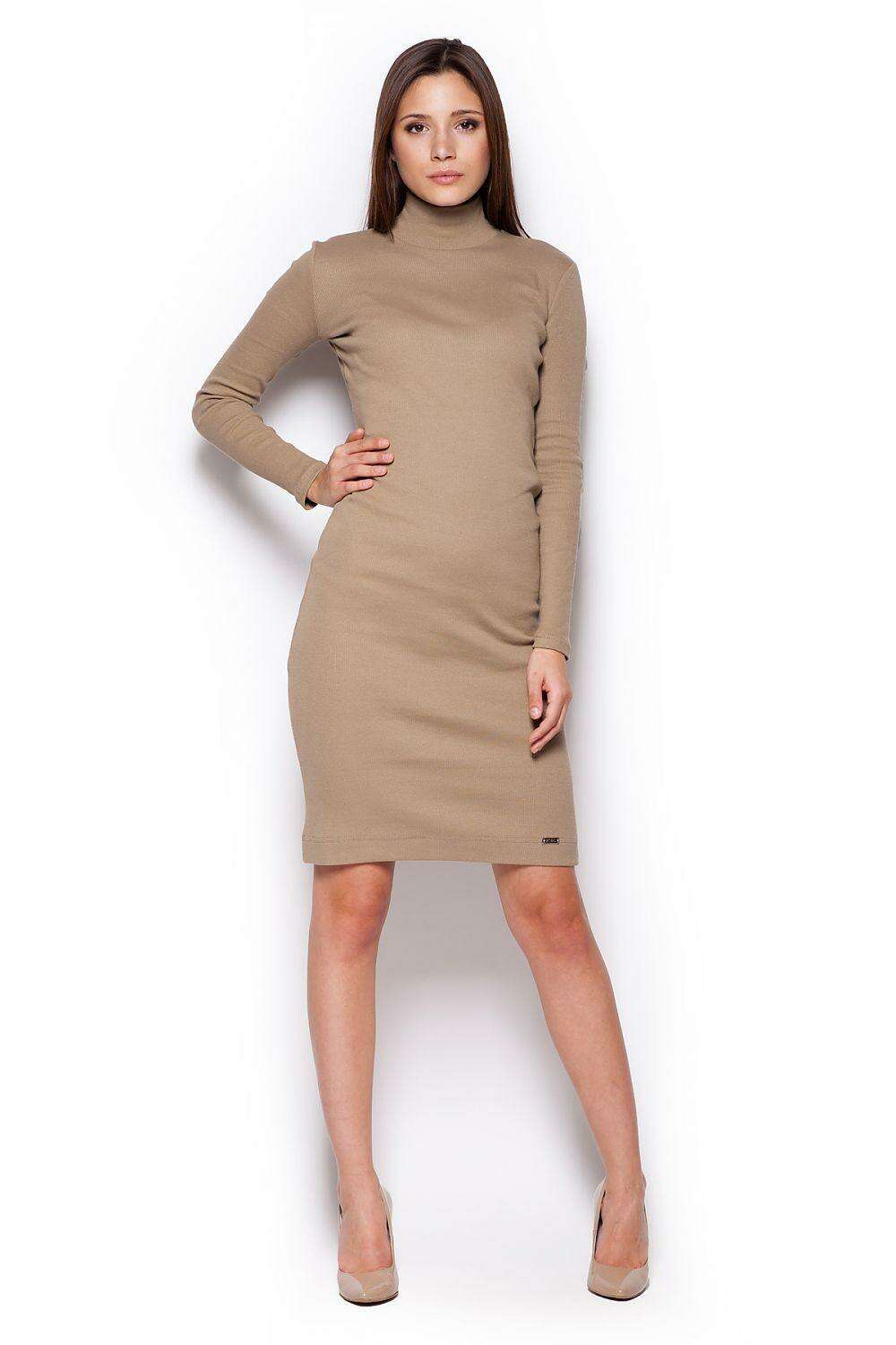 Autumn Chic Ribbed Turtleneck Midi Dress