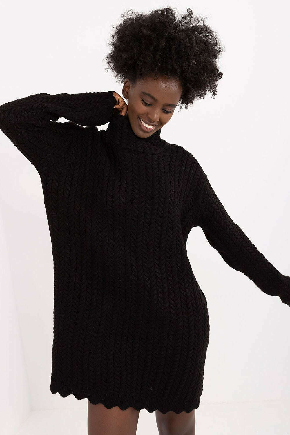 Knitted mini dress with a turtleneck, made of a soft blend of acrylic and wool, perfect for everyday wear. It has long sleeves that provide warmth and comfort on colder days. The varied texture of the weave adds distinctiveness and a unique character to the dress. The casual style makes the dress a great choice for everyday outings, combining comfort with a fashionable and elegant look.