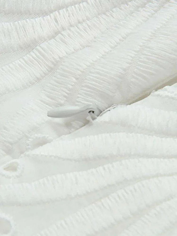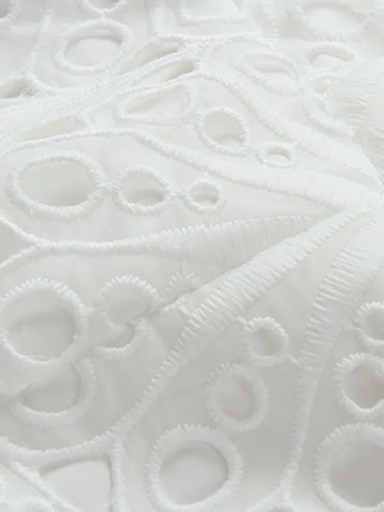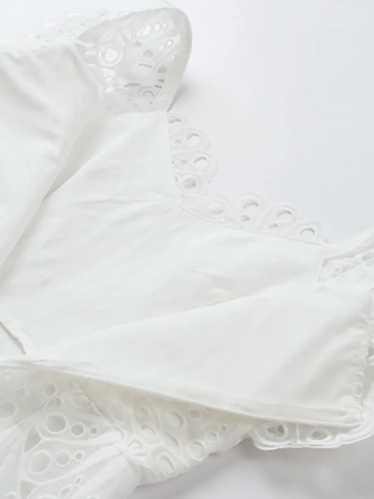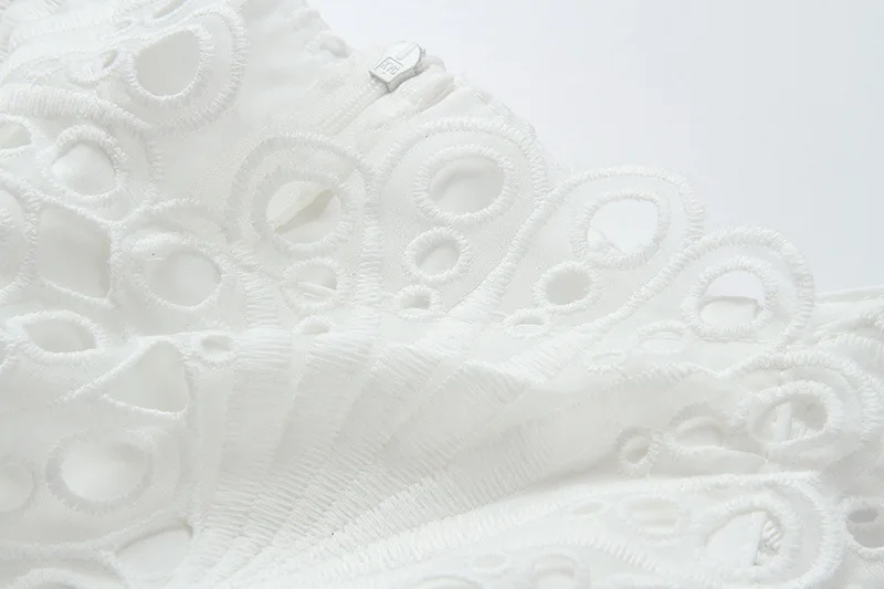 DEAT Elegant Hollow Embroidered High-Waisted Solid Color Summer Dress for Women - 2024 Party Edition 13DB4842