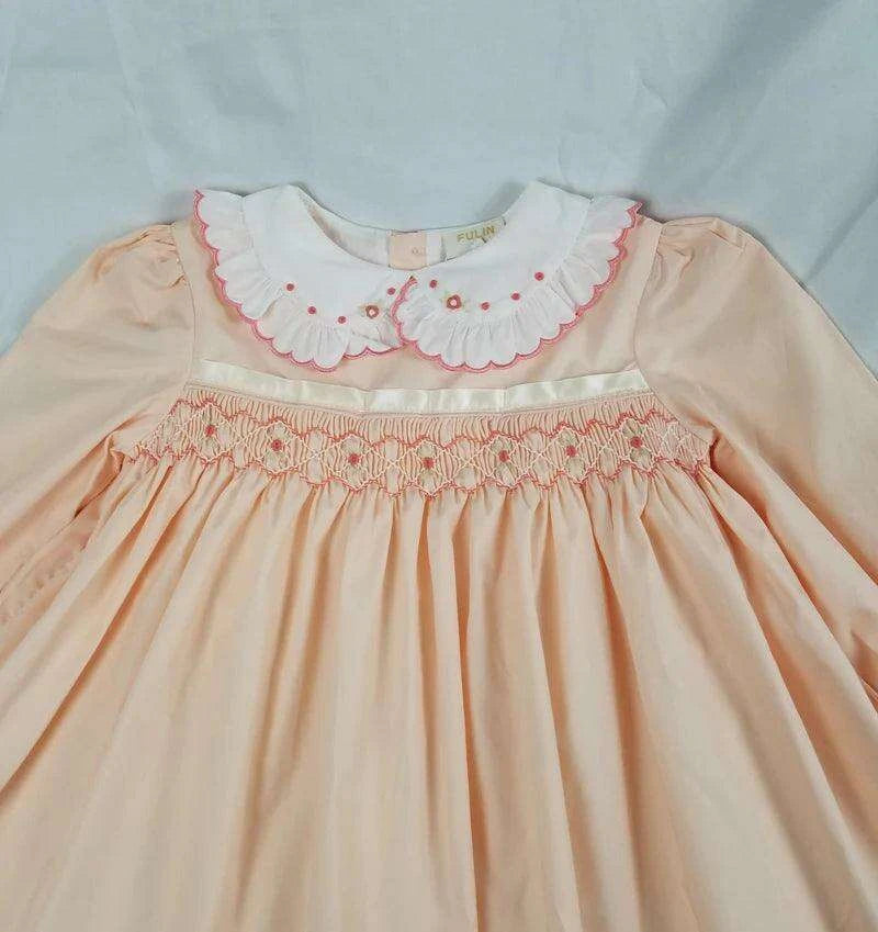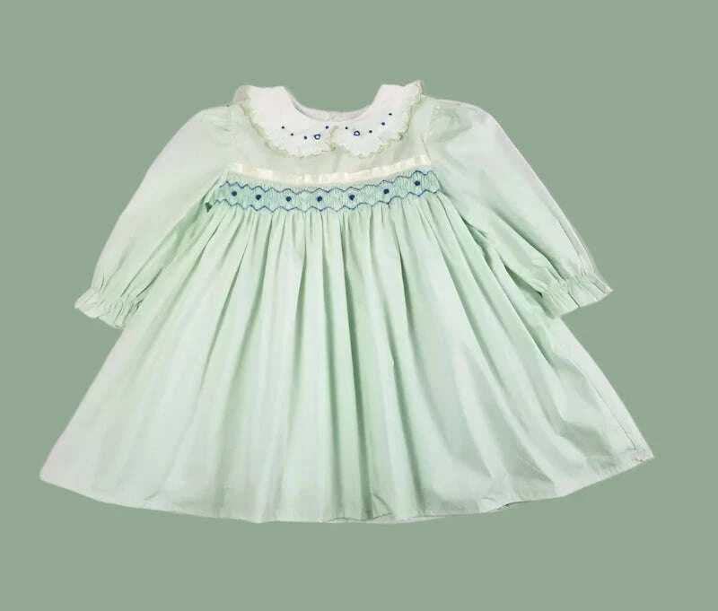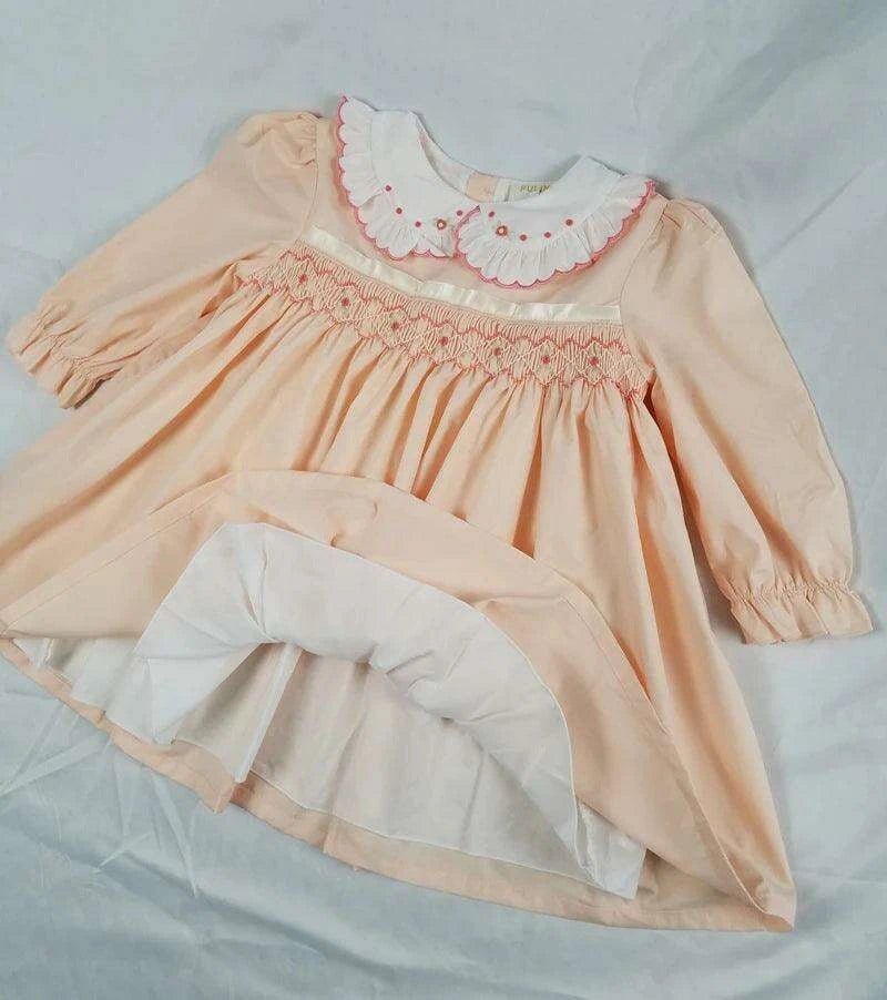 Introducing the Delightful Vintage-Inspired Pink Smocked Dress for Girls - Long Sleeve Autumn Collection with Elegant Embroidery, a stunning addition to your little one's wardrobe. This exquisite dress is perfect for every occasion, blending charm and functionality seamlessly. Crafted with love, this dress showcases timeless elegance that will make your child feel like a true princess.