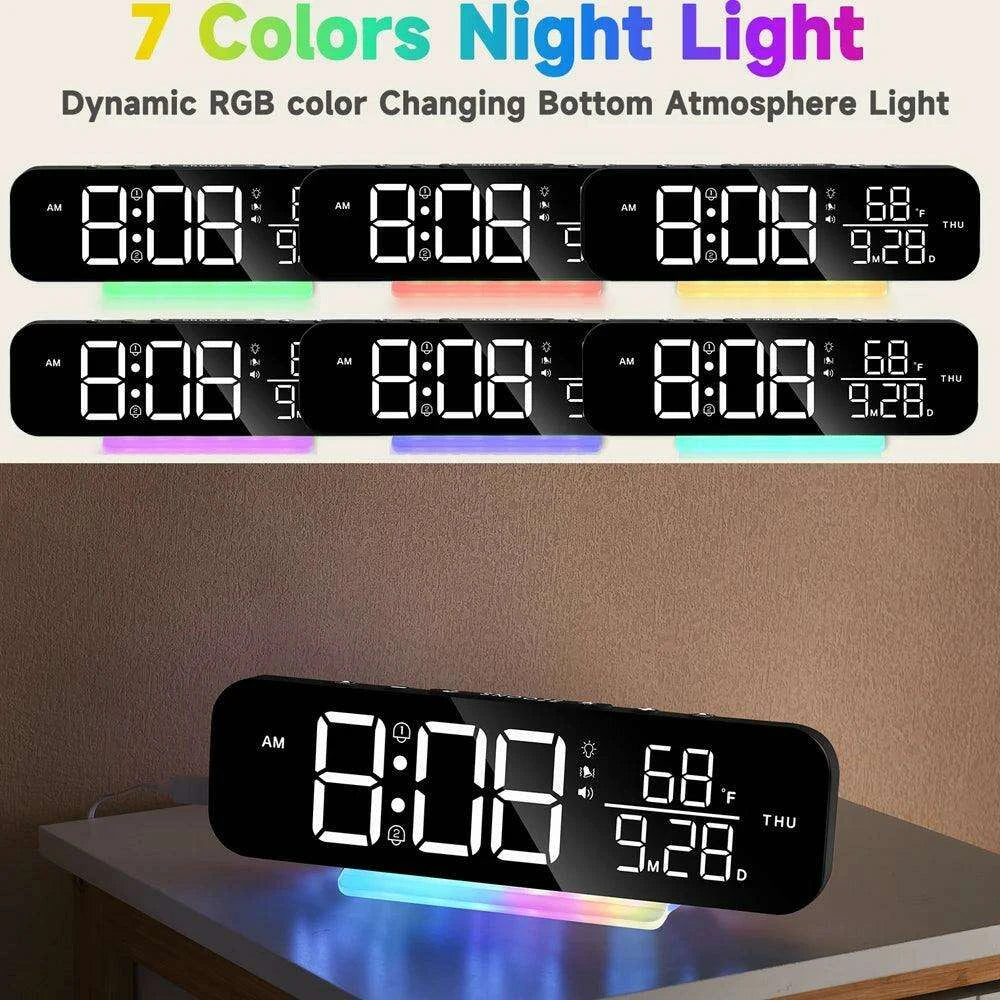 Dual Alarm Vibrating Clock with RGB LED Night Light and Bed Shaker - Loud Wake-Up Alarm