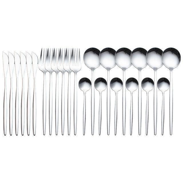 Transform your dining experience with the Sophisticated Dining Set, an exquisite 24-piece flatware collection that merges timeless elegance with functional excellence. Meticulously crafted, each piece enhances every meal—from casual family dinners to elegant gatherings.