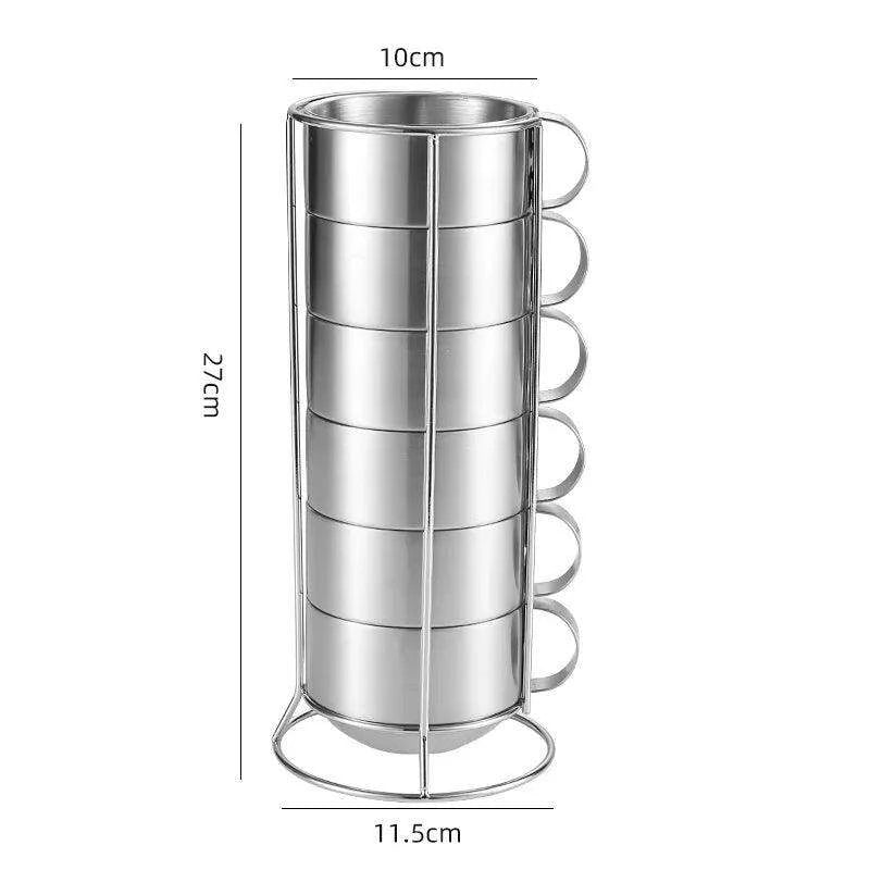 Don't miss the chance to own this elegant set of 6 insulated double-wall mugs! Elevate the aesthetic appeal of your kitchen or bar while enjoying your favorite hot or cold beverages without the worry of temperature loss.