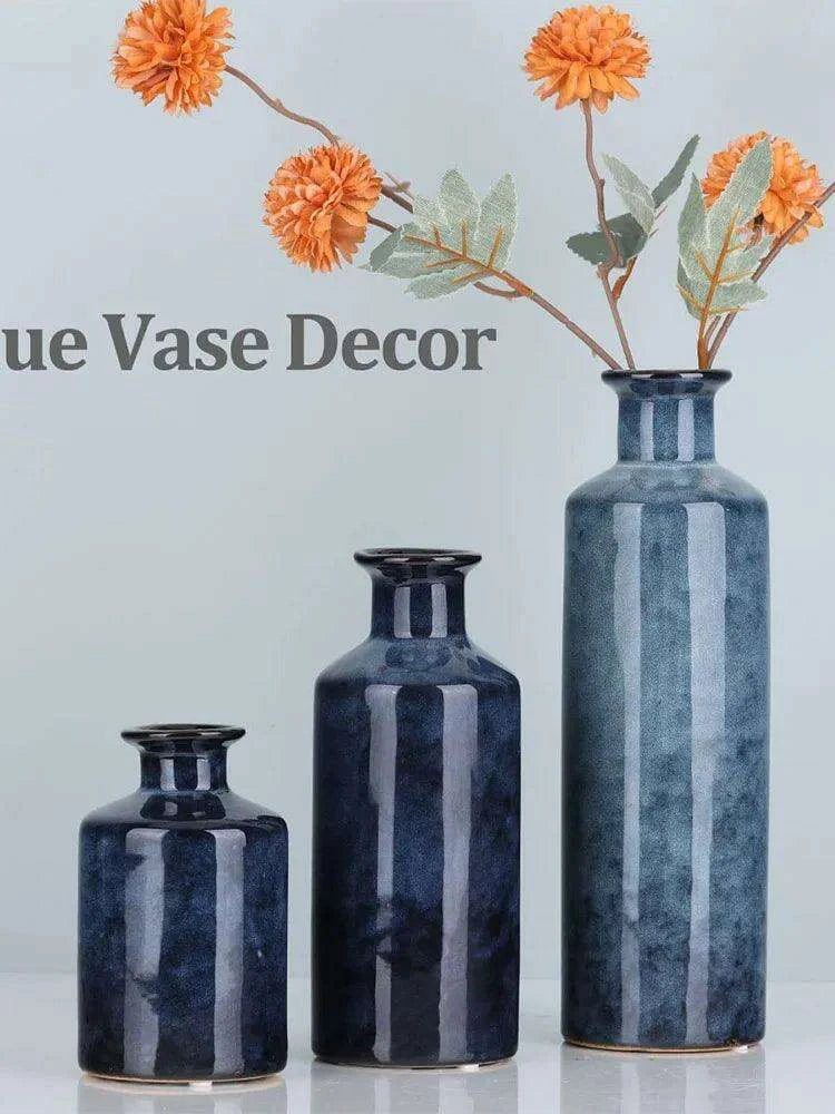 Bring sophistication and warmth to your living space with this chic blue ceramic vase set, and redefine your home decor today!