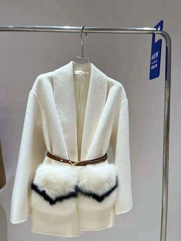 Chic Wool Cashmere Winter Coat with Genuine Fox Fur and Figure-Flattering Belt - 2023 Fashion Must-Have
