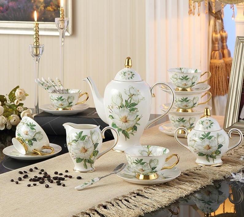 - Complete Collection: Comes complete with a teapot, creamer, sugar bowl, coffee cups with saucers, and spoons—everything you need for a comprehensive tea-serving affair.