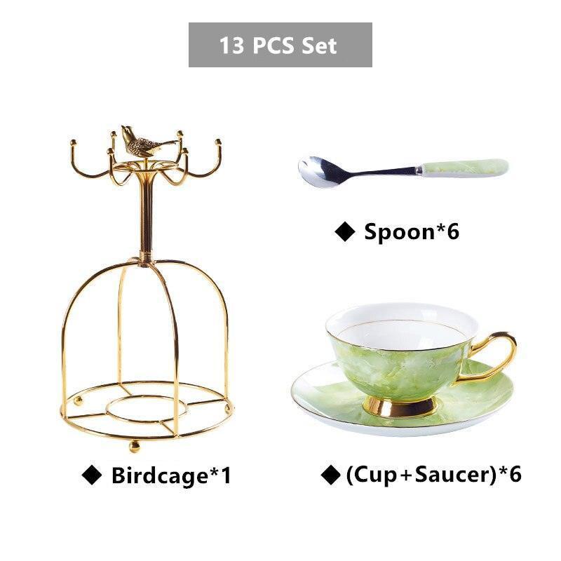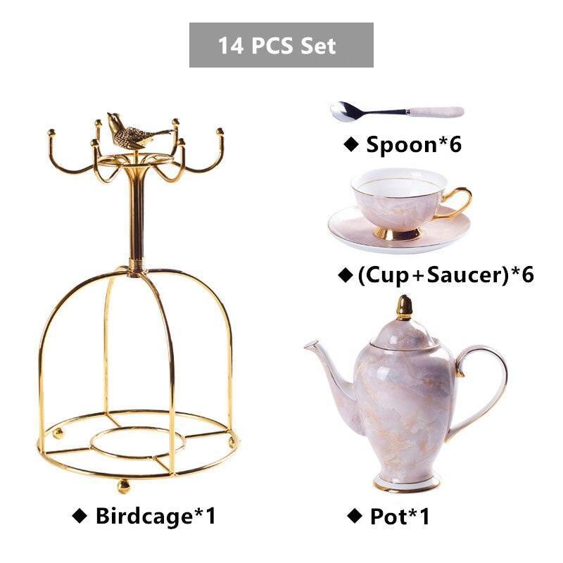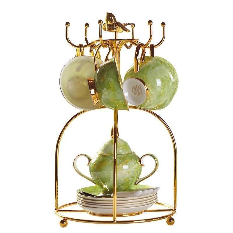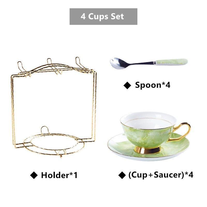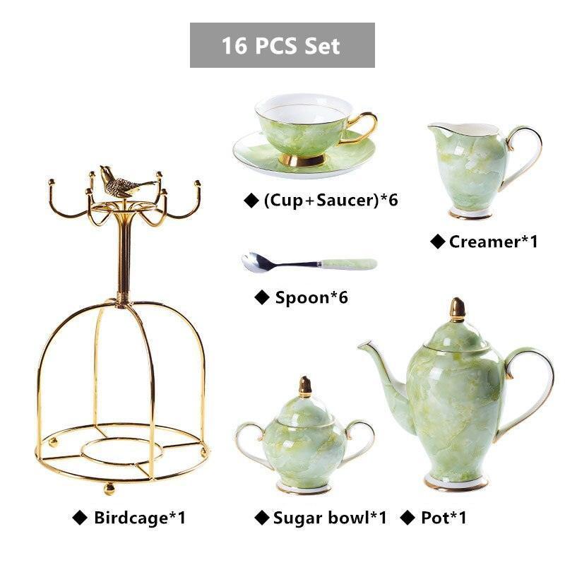 • Elegant Design: With a delicate marbled pattern, embossed golden rim, and exquisite colored glaze, this set radiates luxury, perfect for tea parties or display.