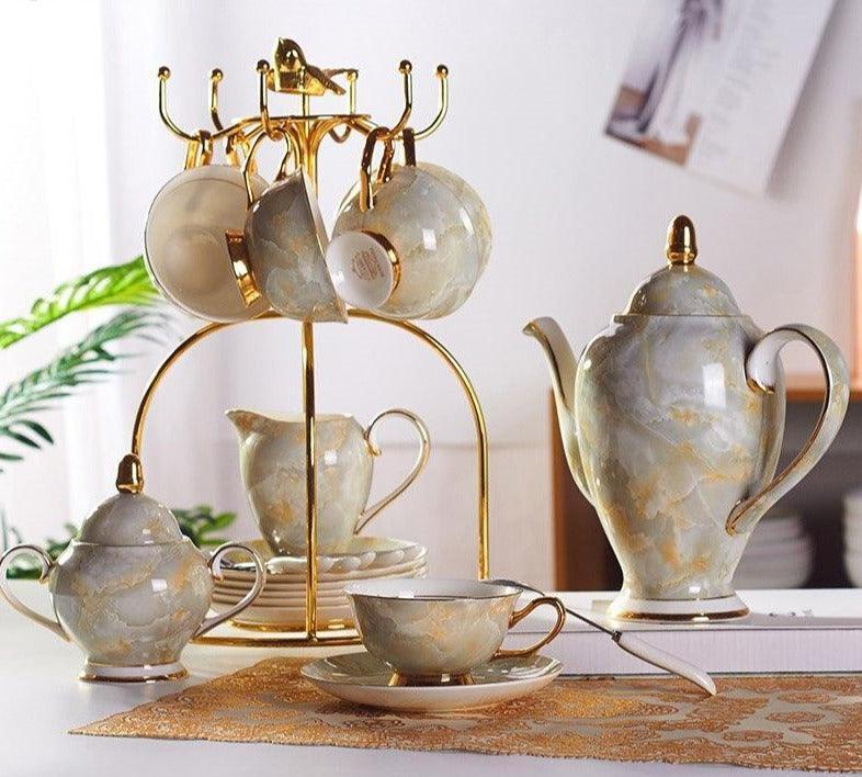 Transform your tea-drinking experience into a moment of elegance with our Luxurious Marbled Bone China Tea Set. This exquisite 21-piece collection is more than just a tea set; it’s a statement of sophistication that stands out from the ordinary.