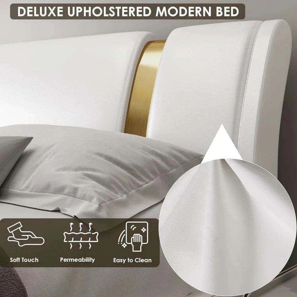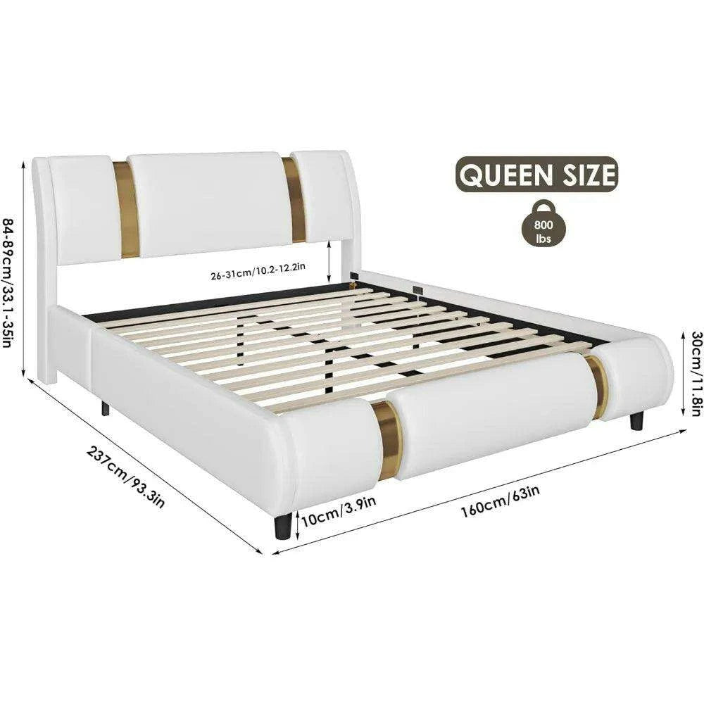 - Upgraded Modern Design: Upholstered in high-quality faux leather and accented with brushed gold metal, this bed frame exudes luxury.