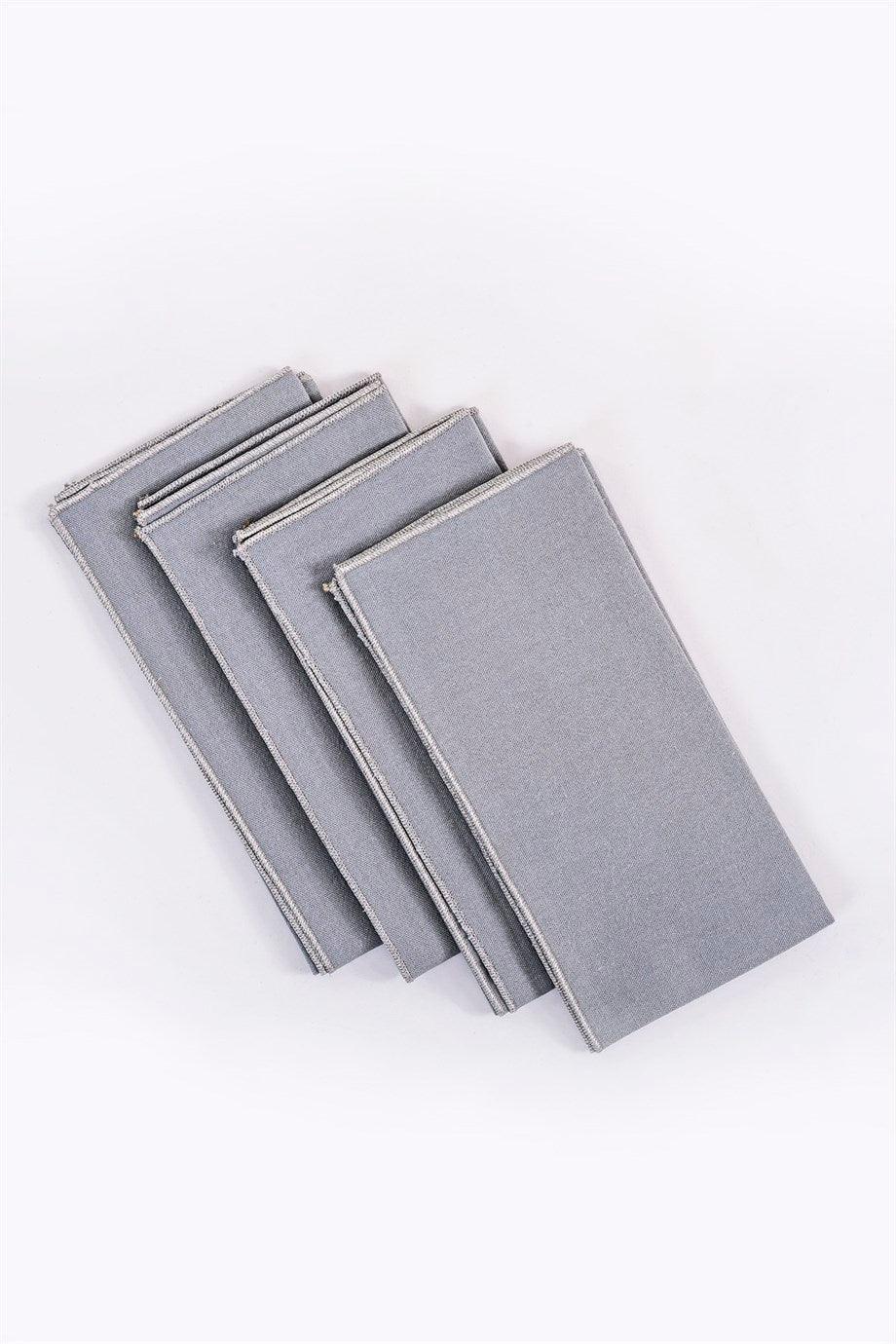 Sophisticated Grey Linen Napkins with Silver Trim, Set of 4, 45x45 Cm Square