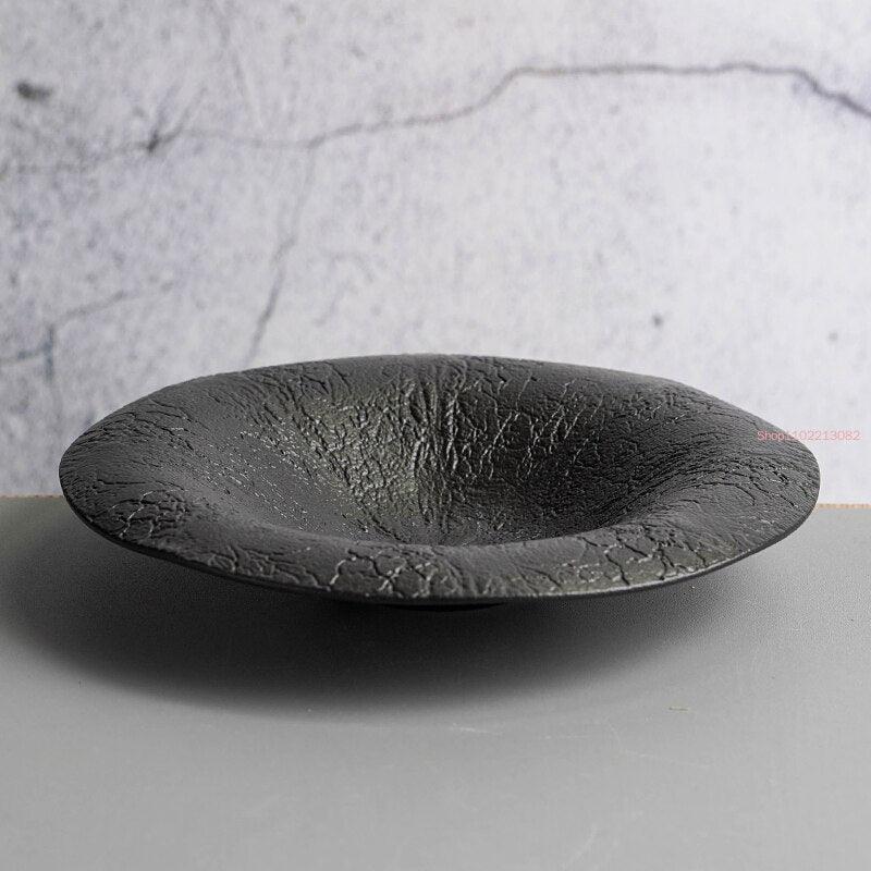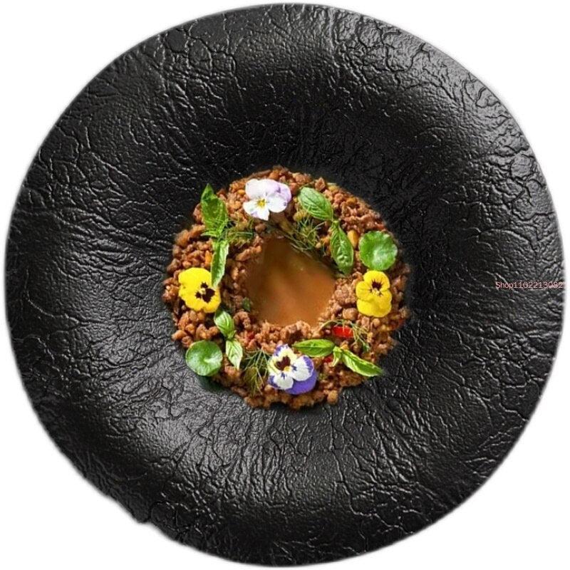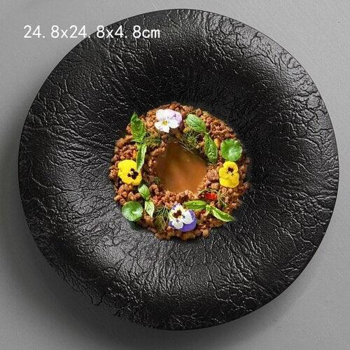 Artisan Volcanic Pattern Steak Plate - Handcrafted Elegance for Sophisticated Dining