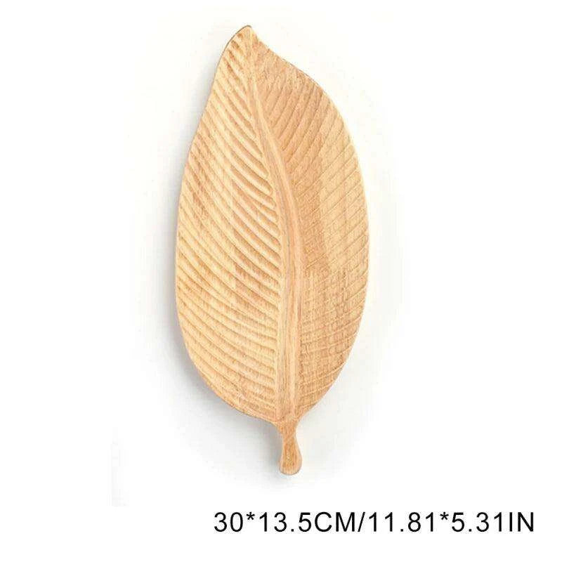 Elegant Leaf-Shaped Walnut Rubber Wood Serving Trays for Luxurious Dining
