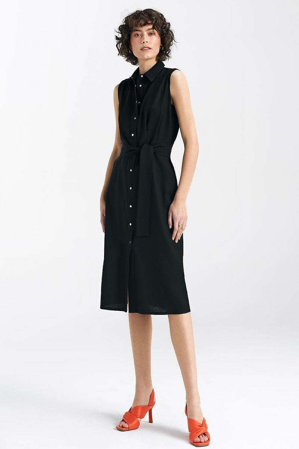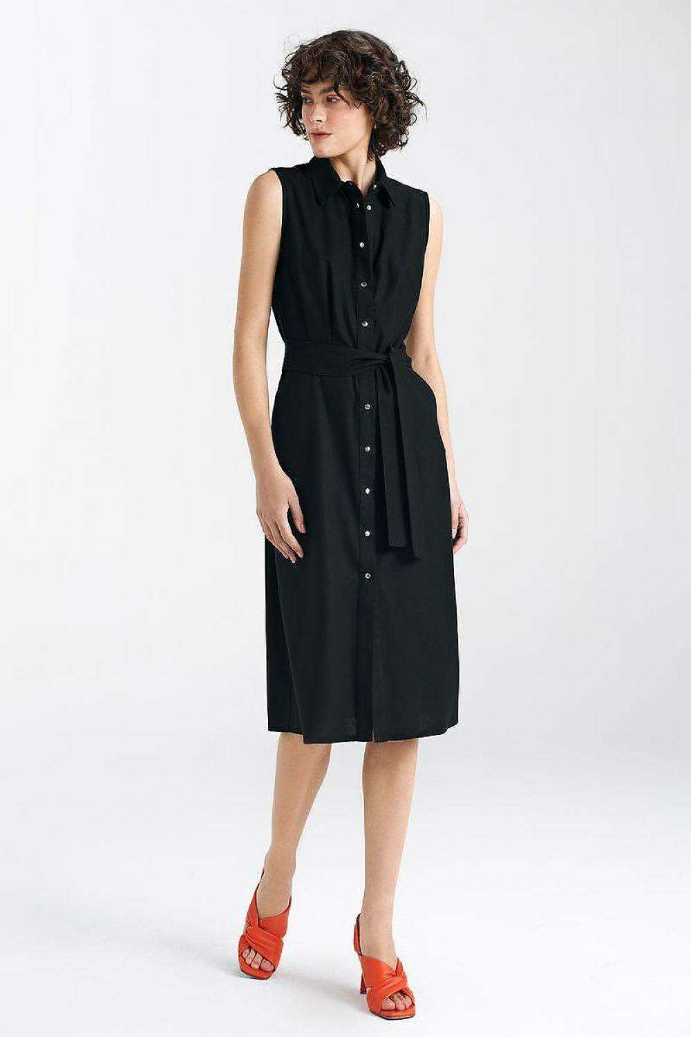 Elegant Sleeveless Midi Shirt Dress with Snap Fastening