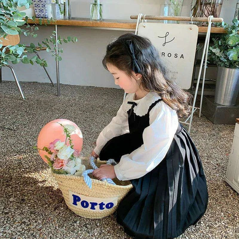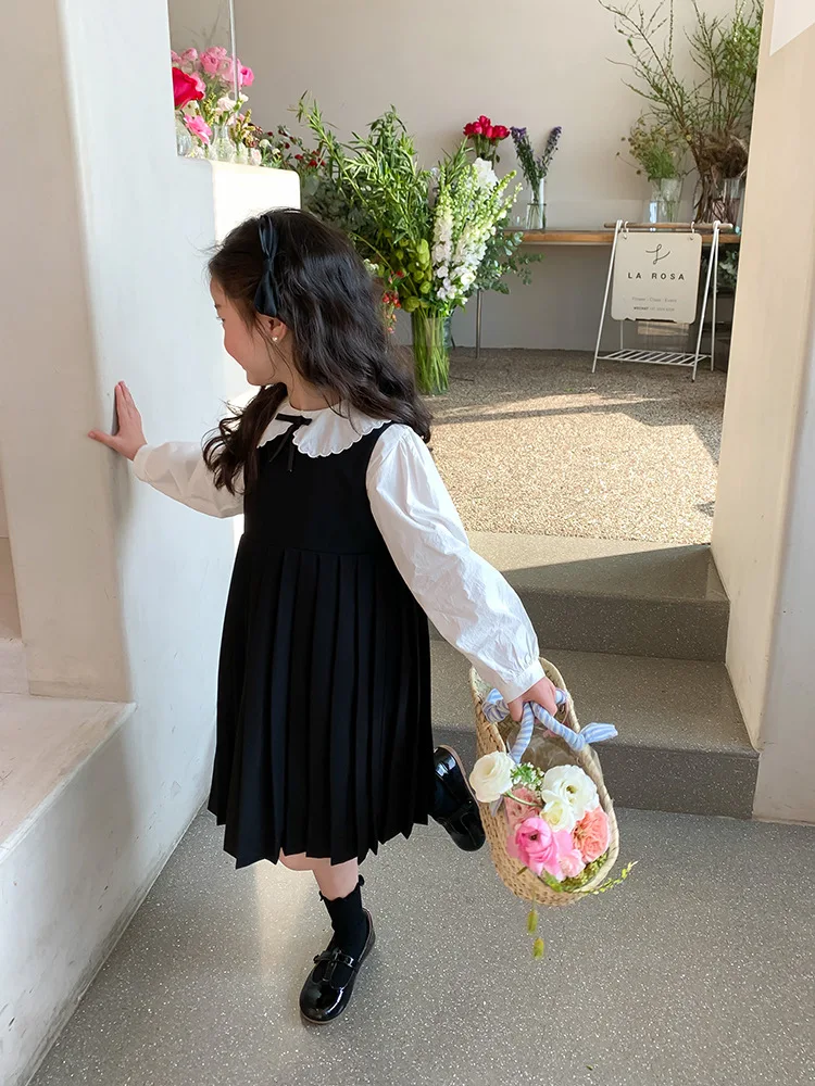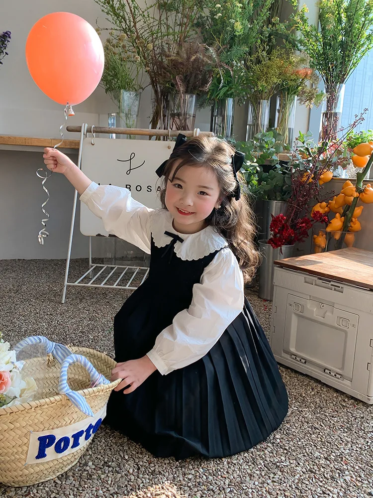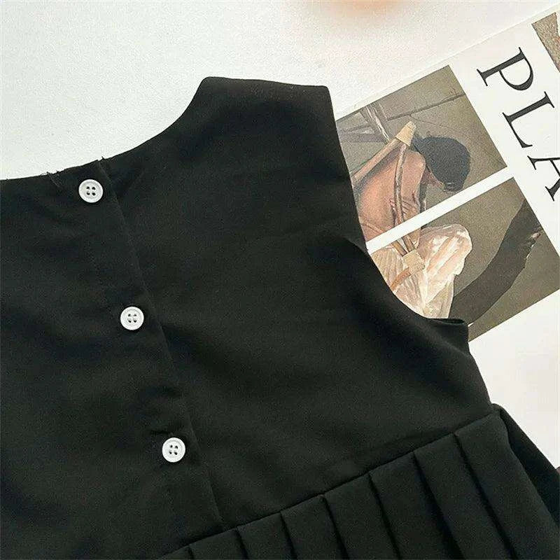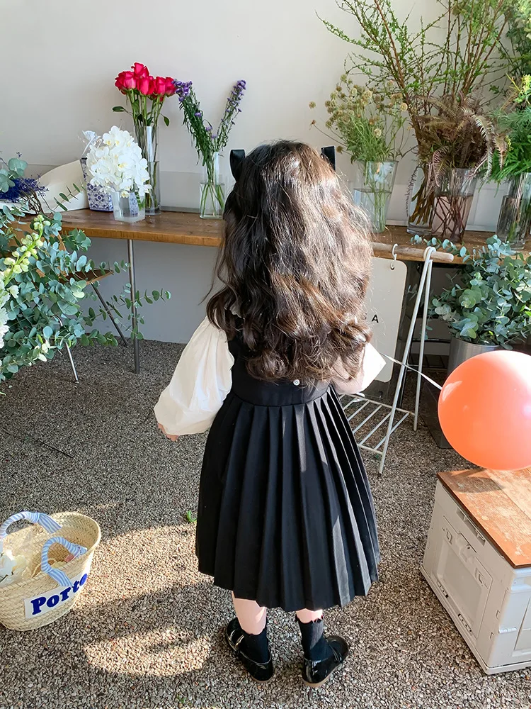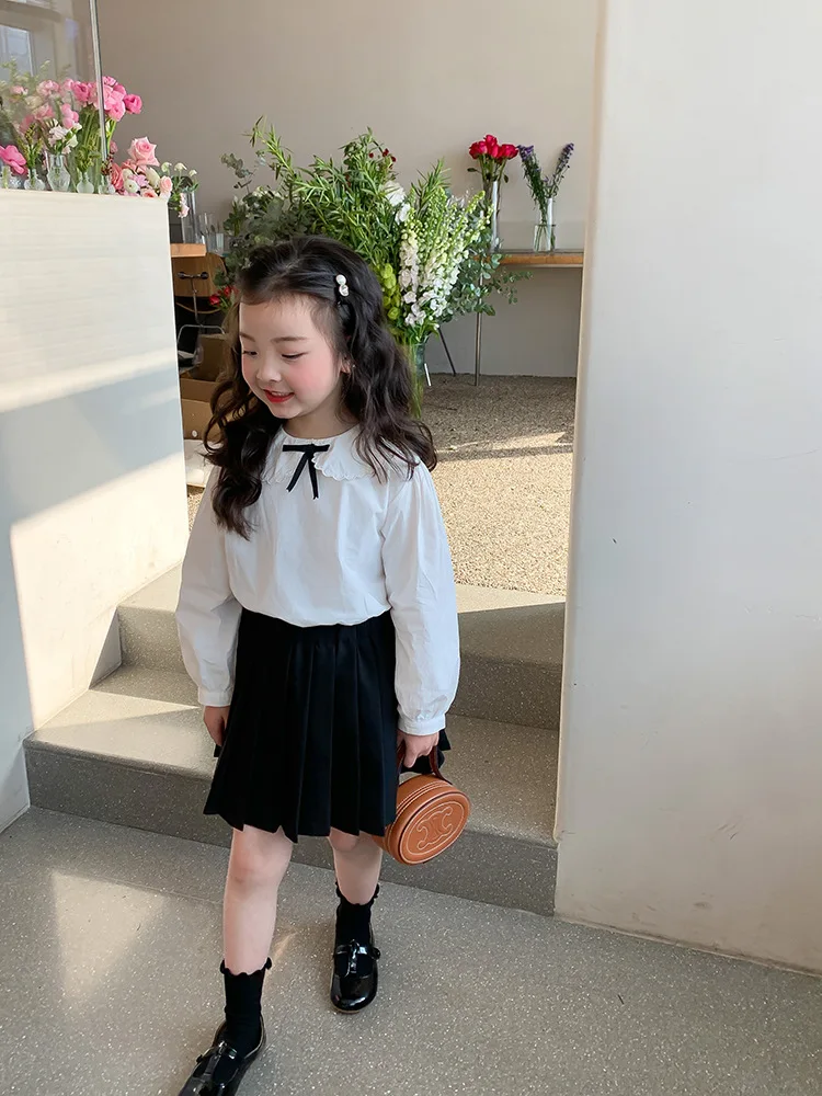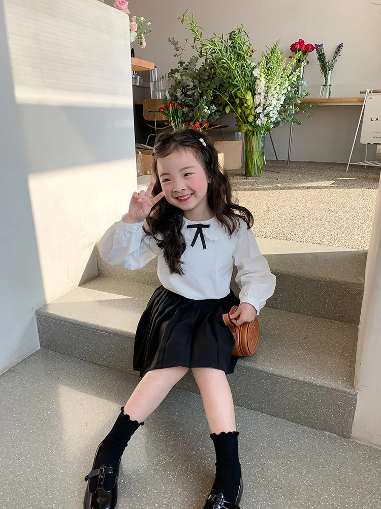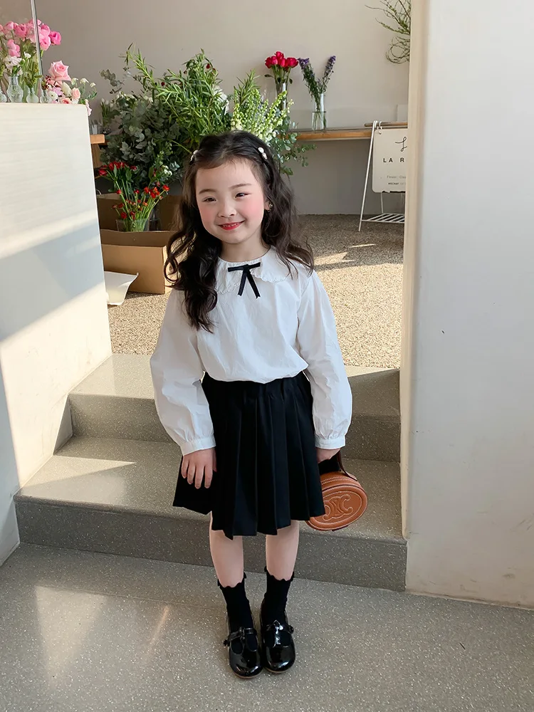 Elegant White Blouse and Chic Black Pleated Skirt for Little Girls
