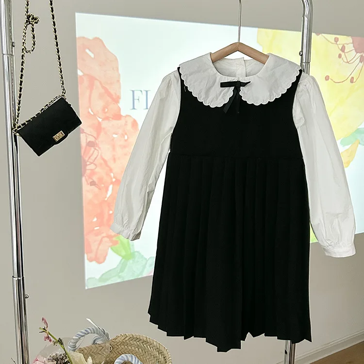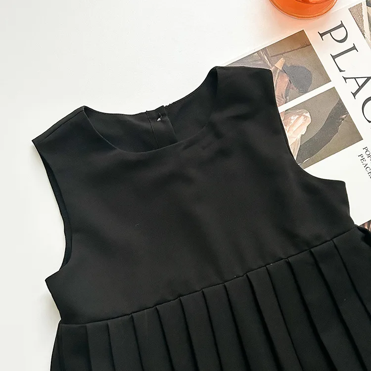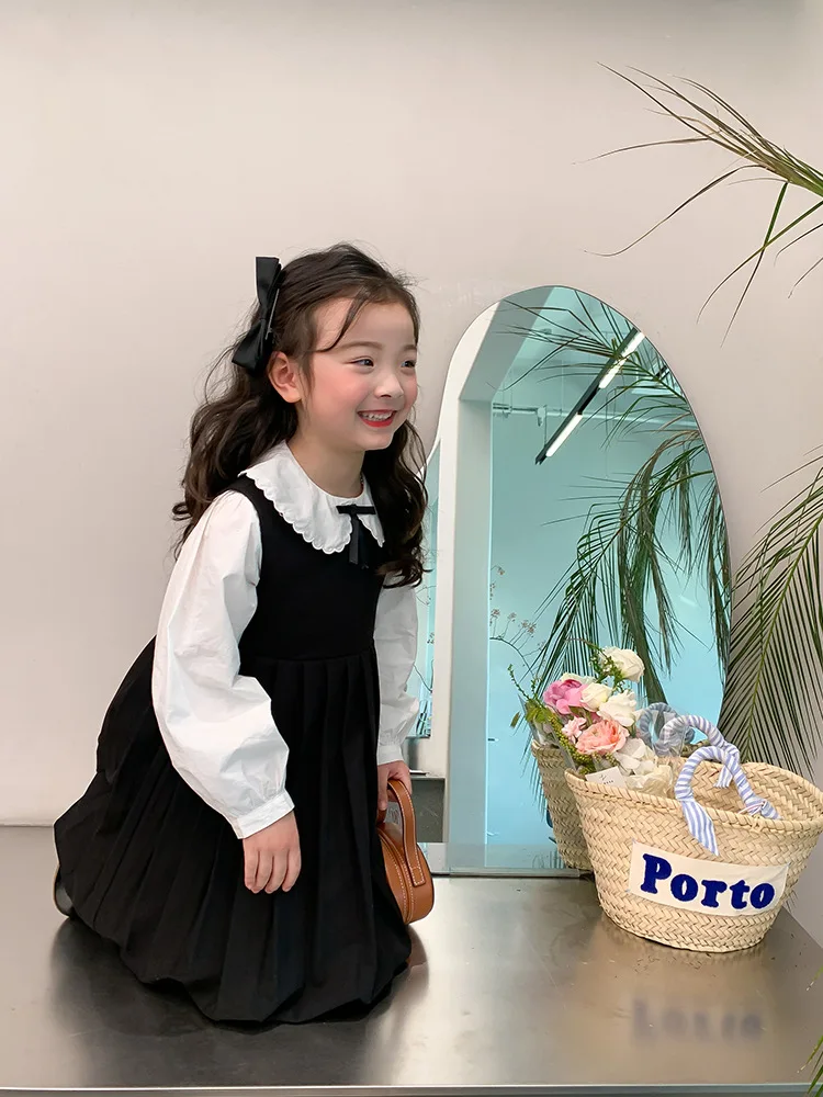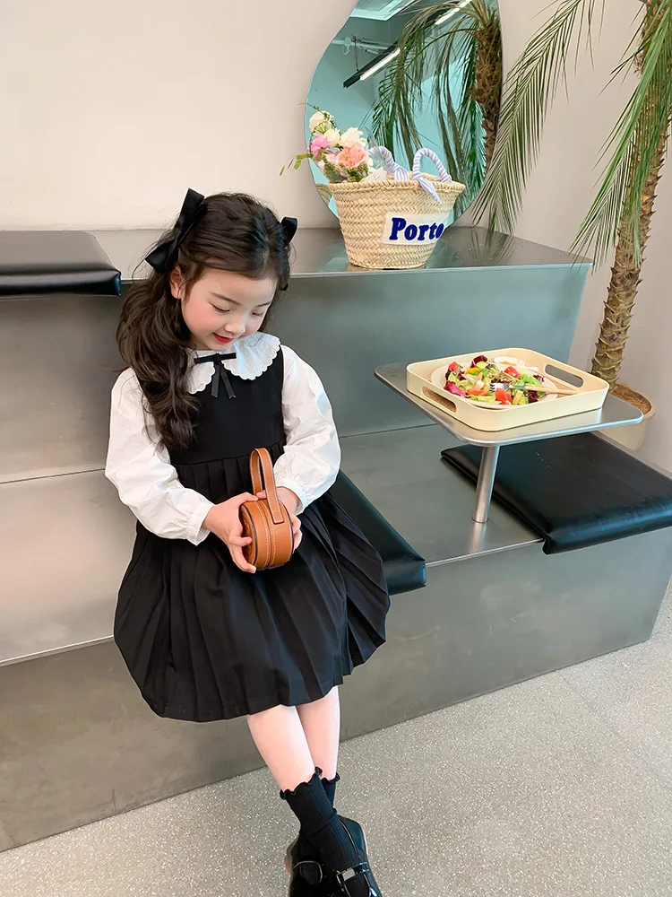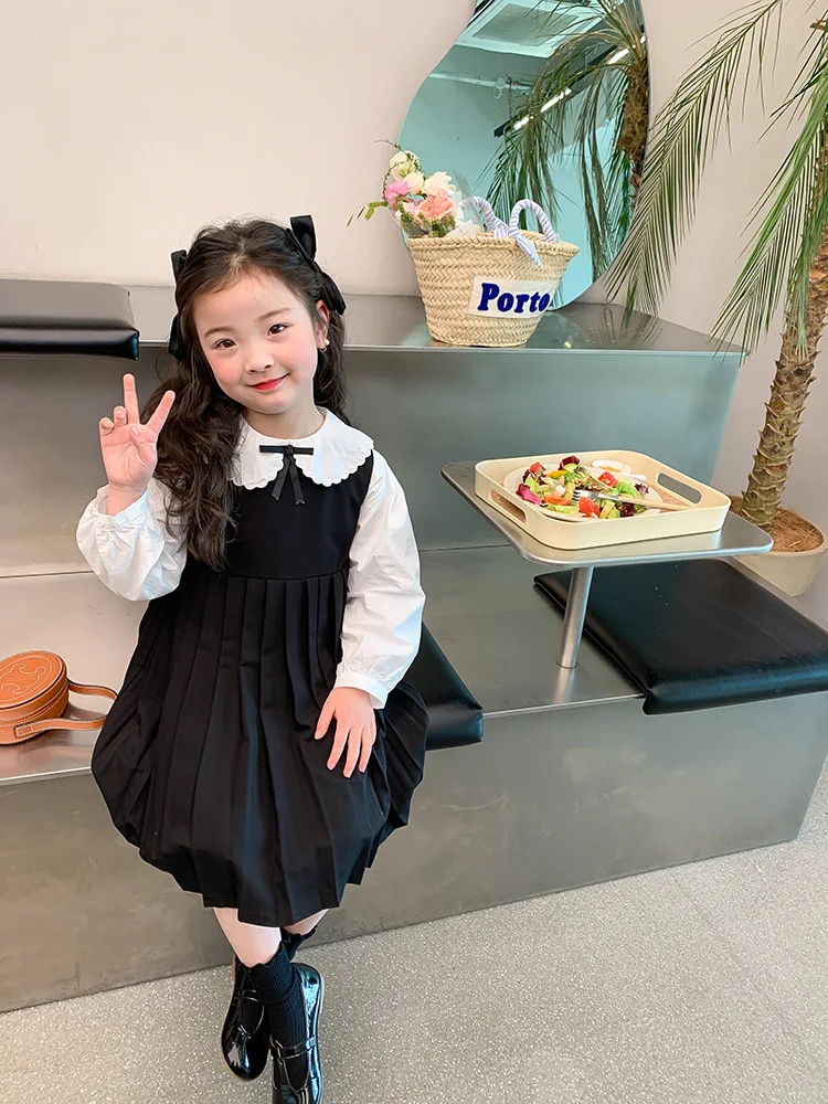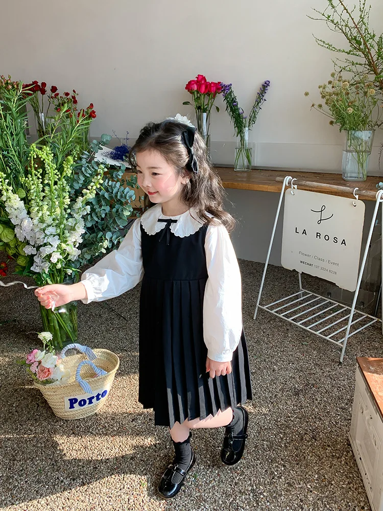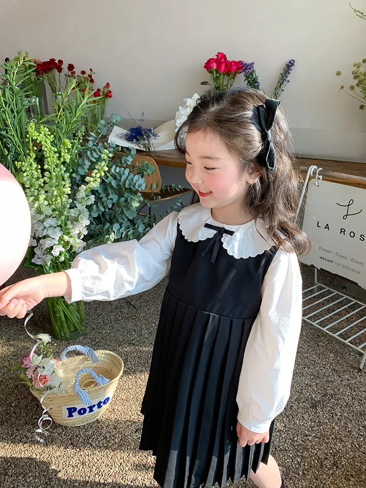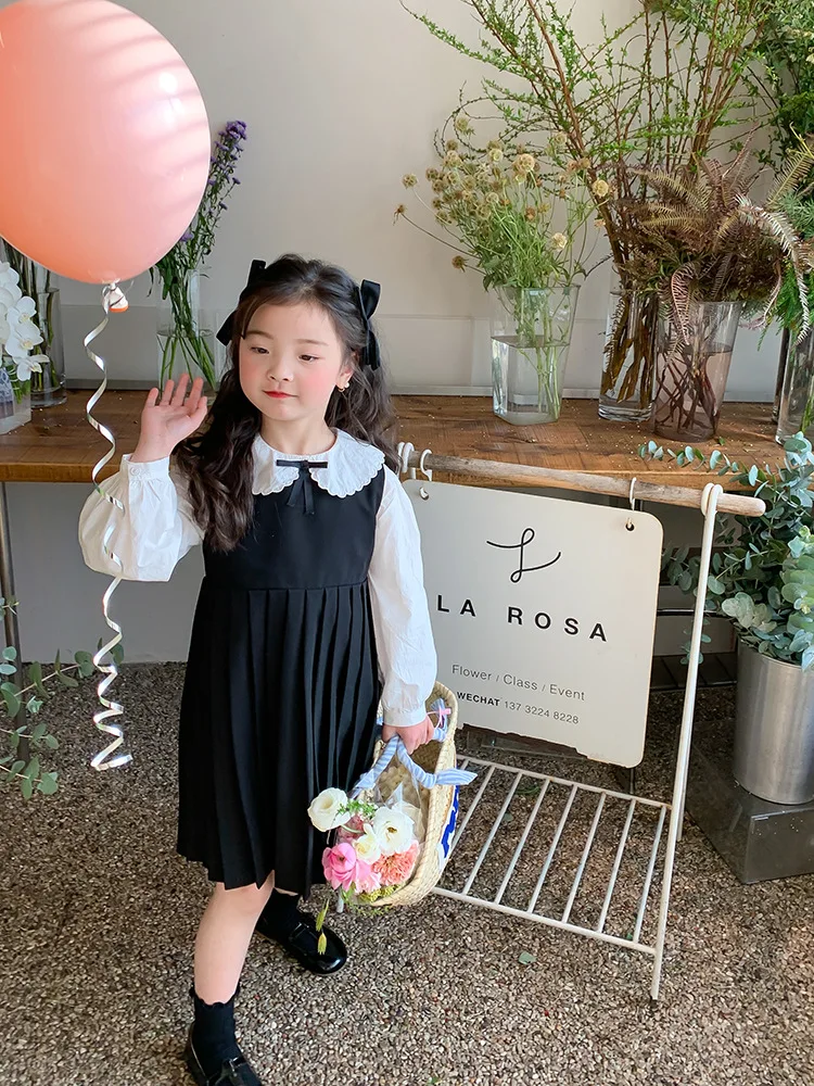 Elegant White Blouse and Chic Black Pleated Skirt for Little Girls