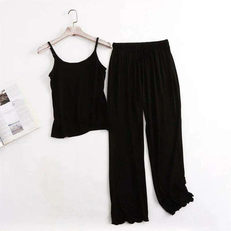Experience the perfect blend of sophistication and comfort with our Elegant Women's Modal Sleep Set. This chic sling pajama top and pant suit is specifically designed for the modern woman who appreciates elegance in her nighttime attire.