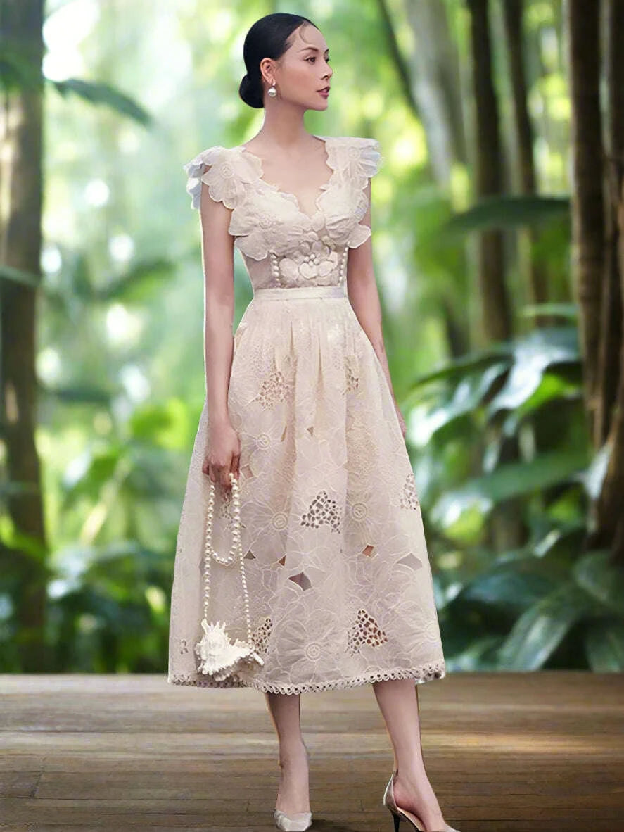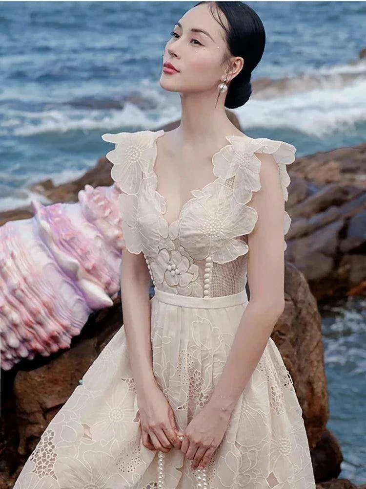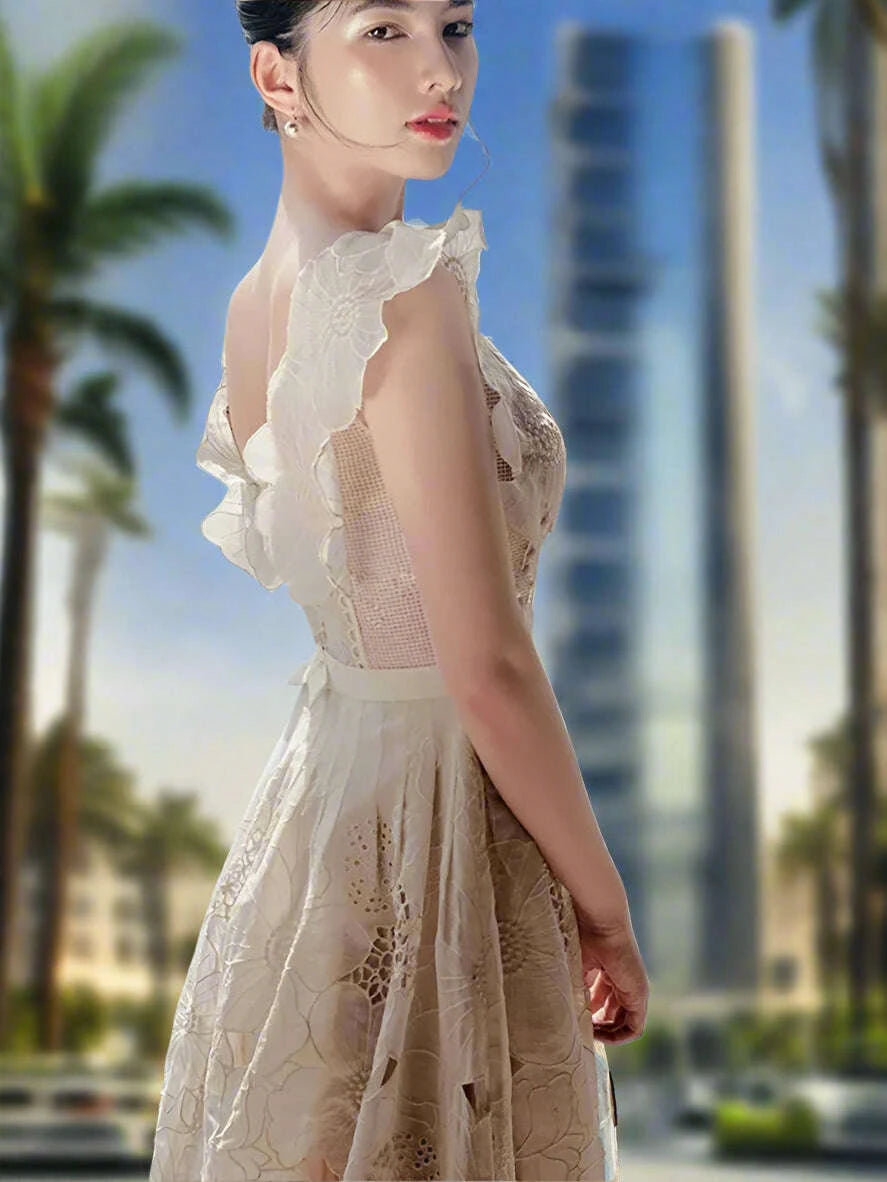 Discover the elegance of the Women's Floral Embroidery Hollow V-Neck Lace Dress - Summer Fashion, a must-have addition to your summer wardrobe. This enchanting dress is crafted to turn heads, featuring intricate floral embroidery that adds a delightful feminine touch. The hollow out design not only enhances the aesthetics but also provides breathability, making it perfect for warm, sunny days.