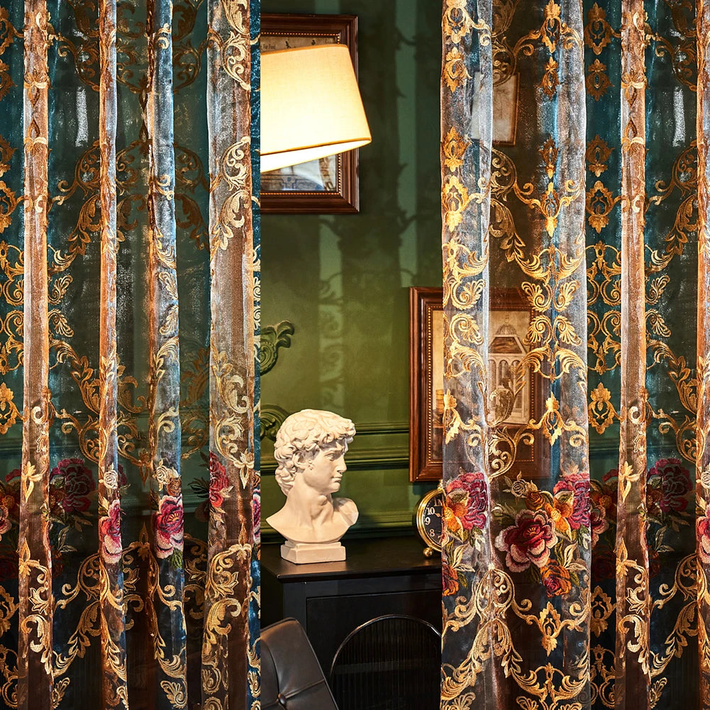 Transform your living room into a refined European salon with these neoclassical style gauze sheer curtains. Delicate hollowed-out embroidery dances across soft tulle, gently filtering light while adding a touch of timeless luxury to your home decor. Perfect for those who love a bright, airy space with a sophisticated, high-end finish.