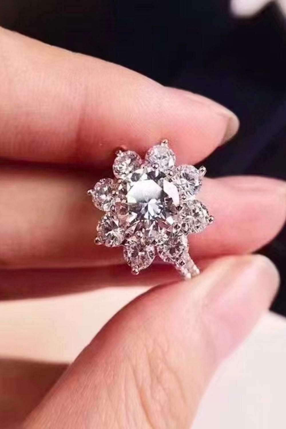 Step into a realm of elegance with our Exquisite Floral Moissanite Ring, adorned with luxurious Platinum-Plated Zircon Accents. This stunning piece is designed to elevate your style and redefine sophistication.