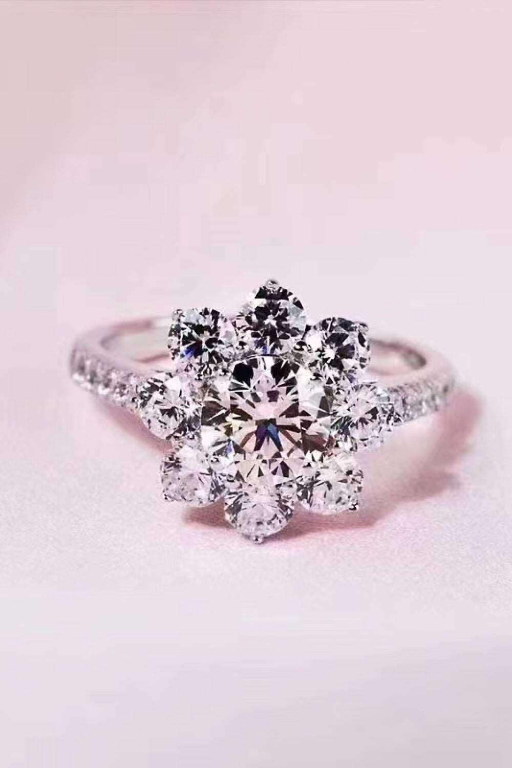 Exquisite Floral Moissanite Ring with Platinum-Plated Zircon Accents - Unmatched Sophistication