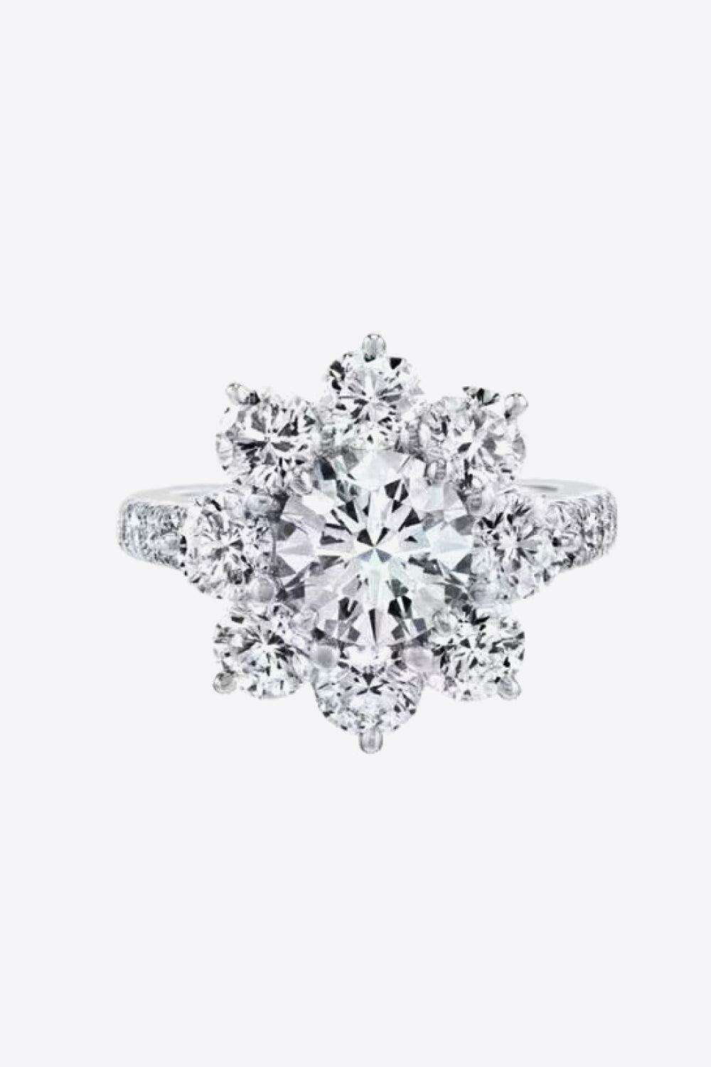 Indulge in the luxury of our Floral Moissanite Ring with Platinum-Plated Zircon Accents, weighing just 0.1 oz (3 g). This exceptional piece is a must-have addition to your jewelry collection, promising unmatched sophistication for every occasion.
