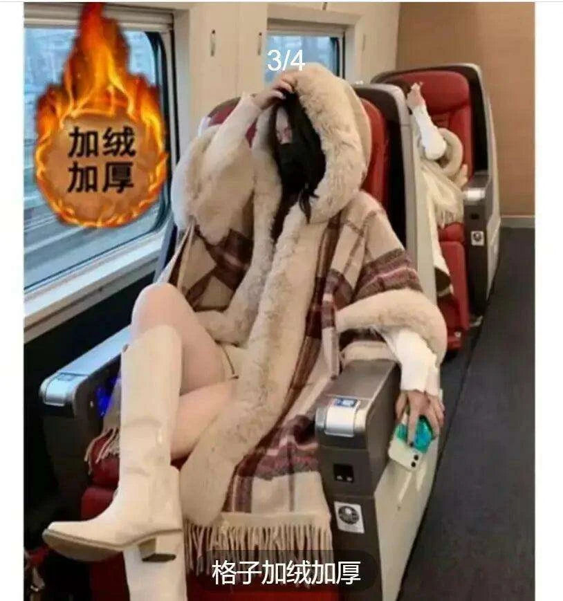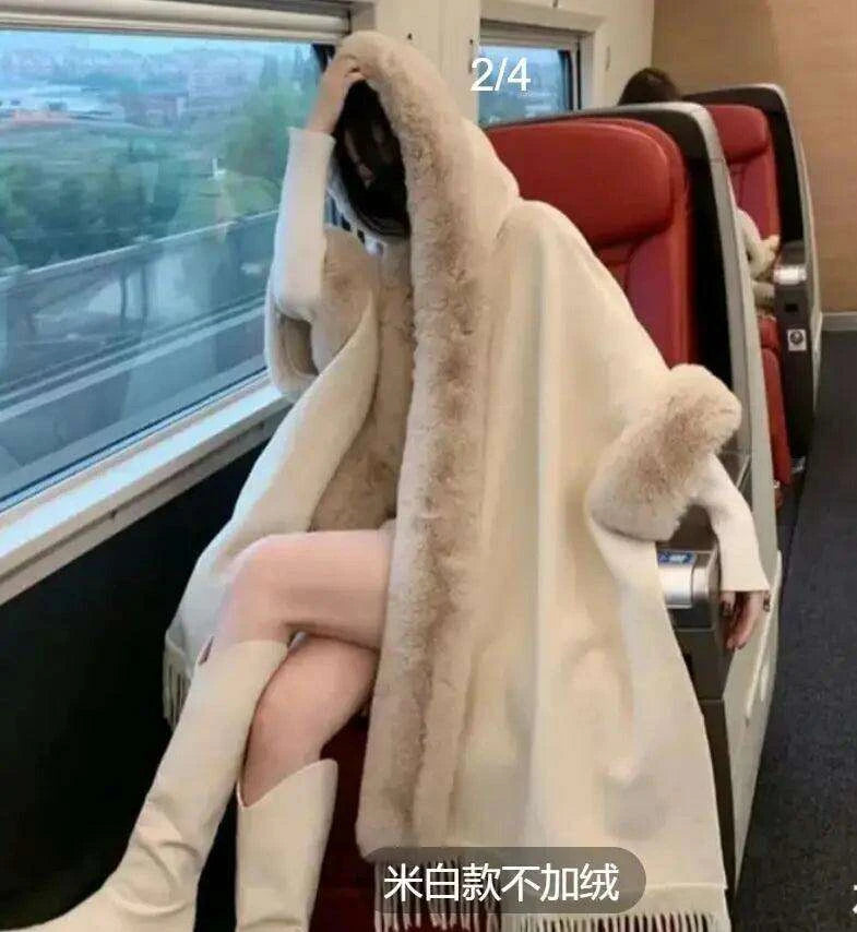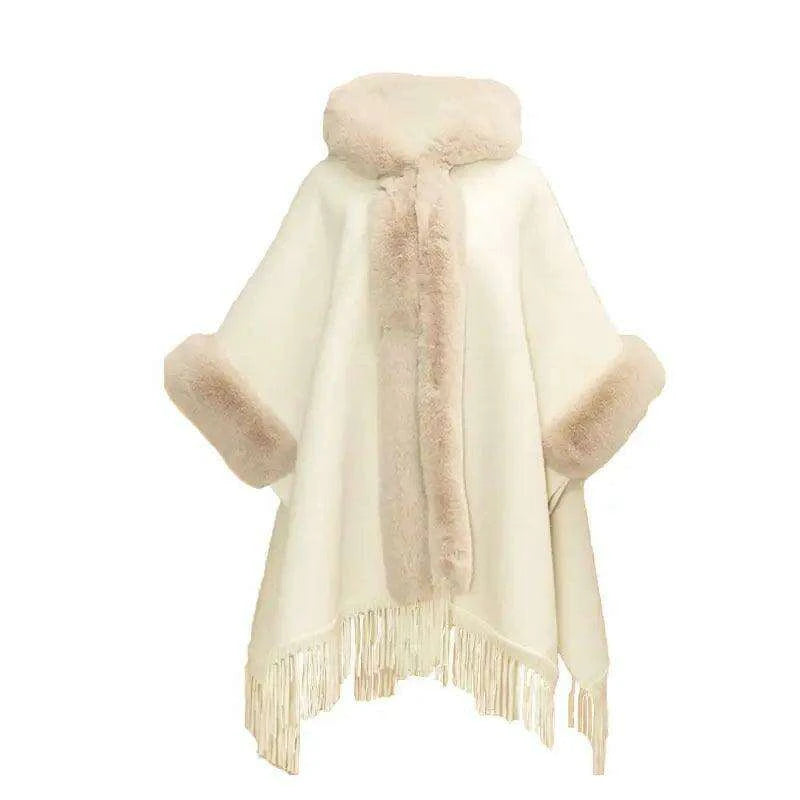 Chic Batwing Sleeve Poncho with Luxurious Fur Hood for Fashion-Forward Women