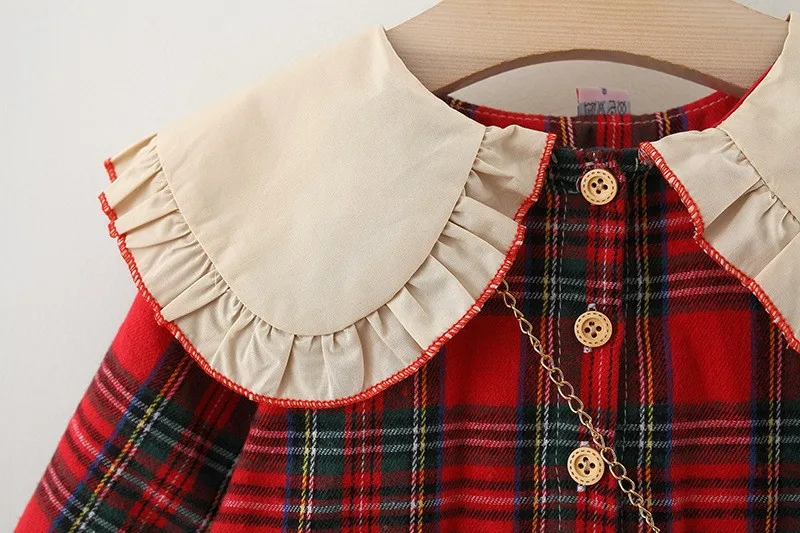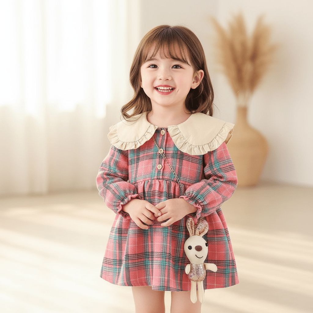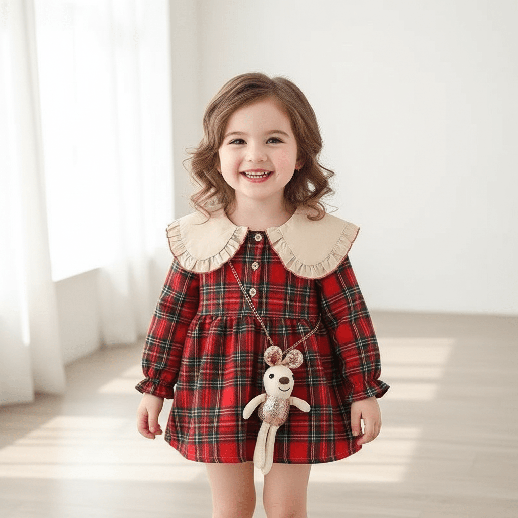 Christmas Dress for Girls Aged 9 Months to 3 Years with Adorable Plaid Pattern and Rabbit Accents