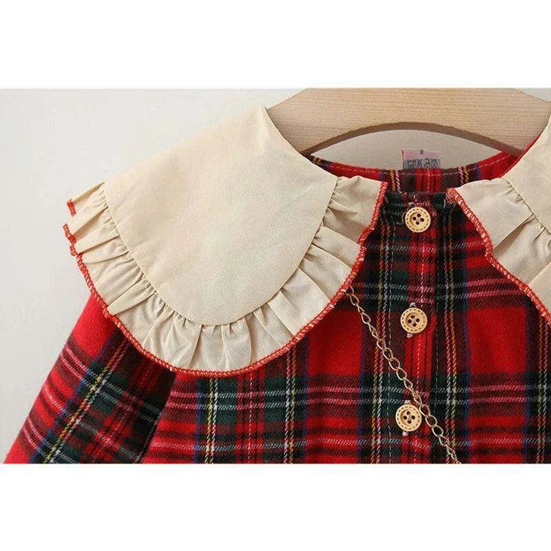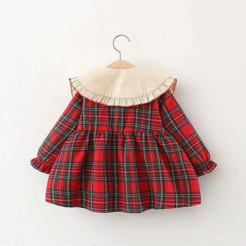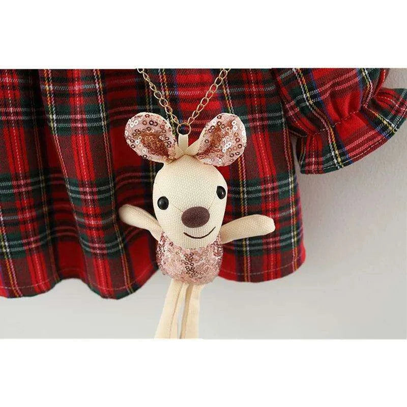 Festive Plaid Christmas Dress for Girls 9 Months to 3 Years with Cute Rabbit Accents