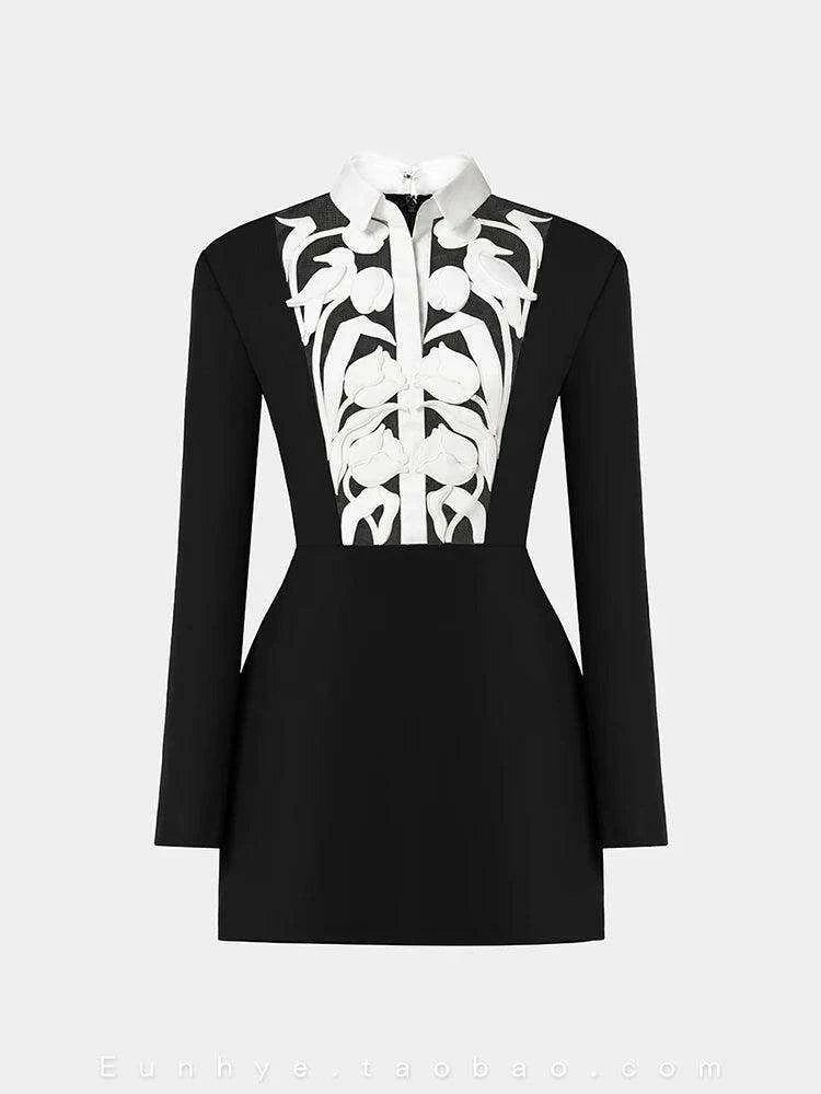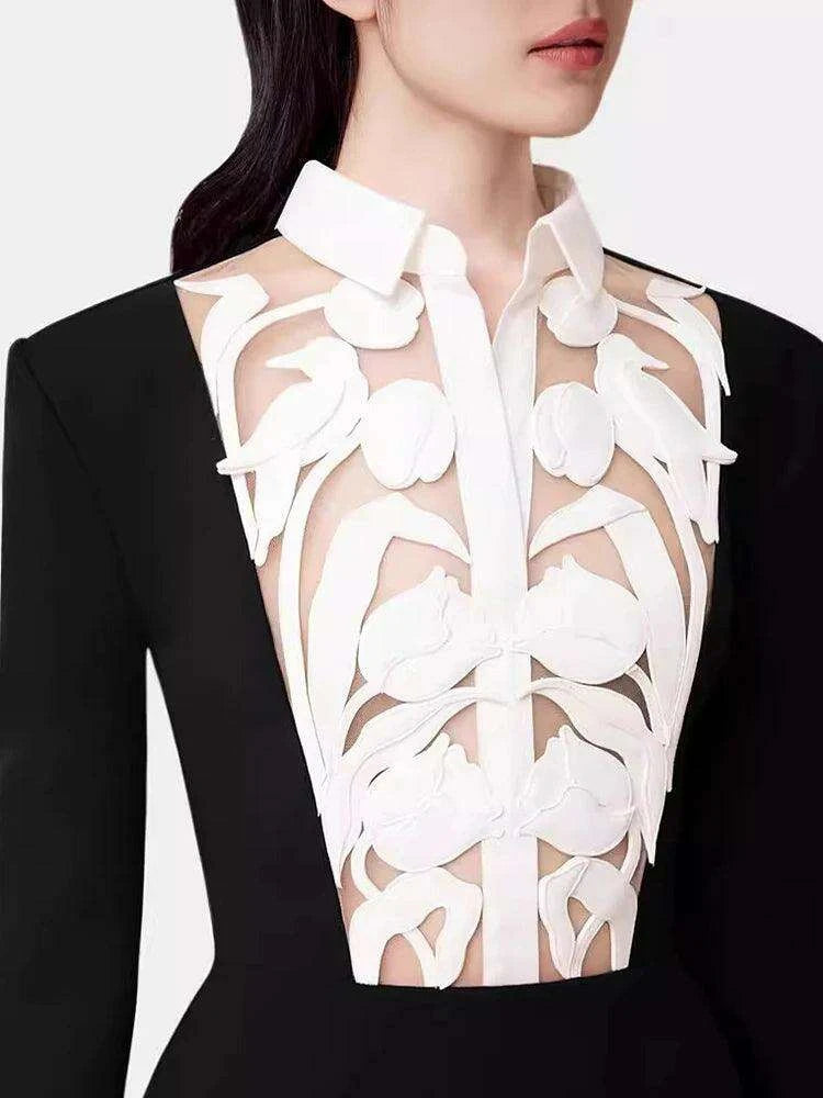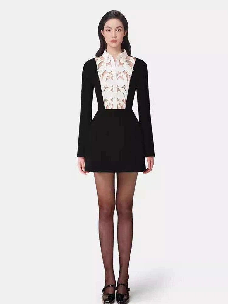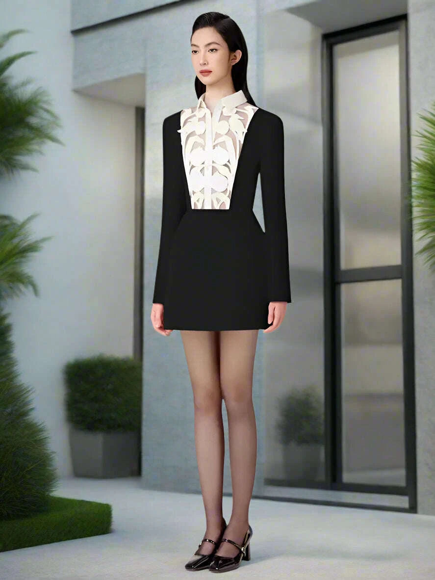 Floral Cut-Out Contrast Mini Dress with Lapel Detail for Women