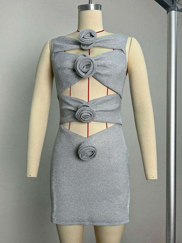 Floral-Embellished Bodycon Dress with Striking Cutout Accents - Women's Fashion Statement - Très Elite