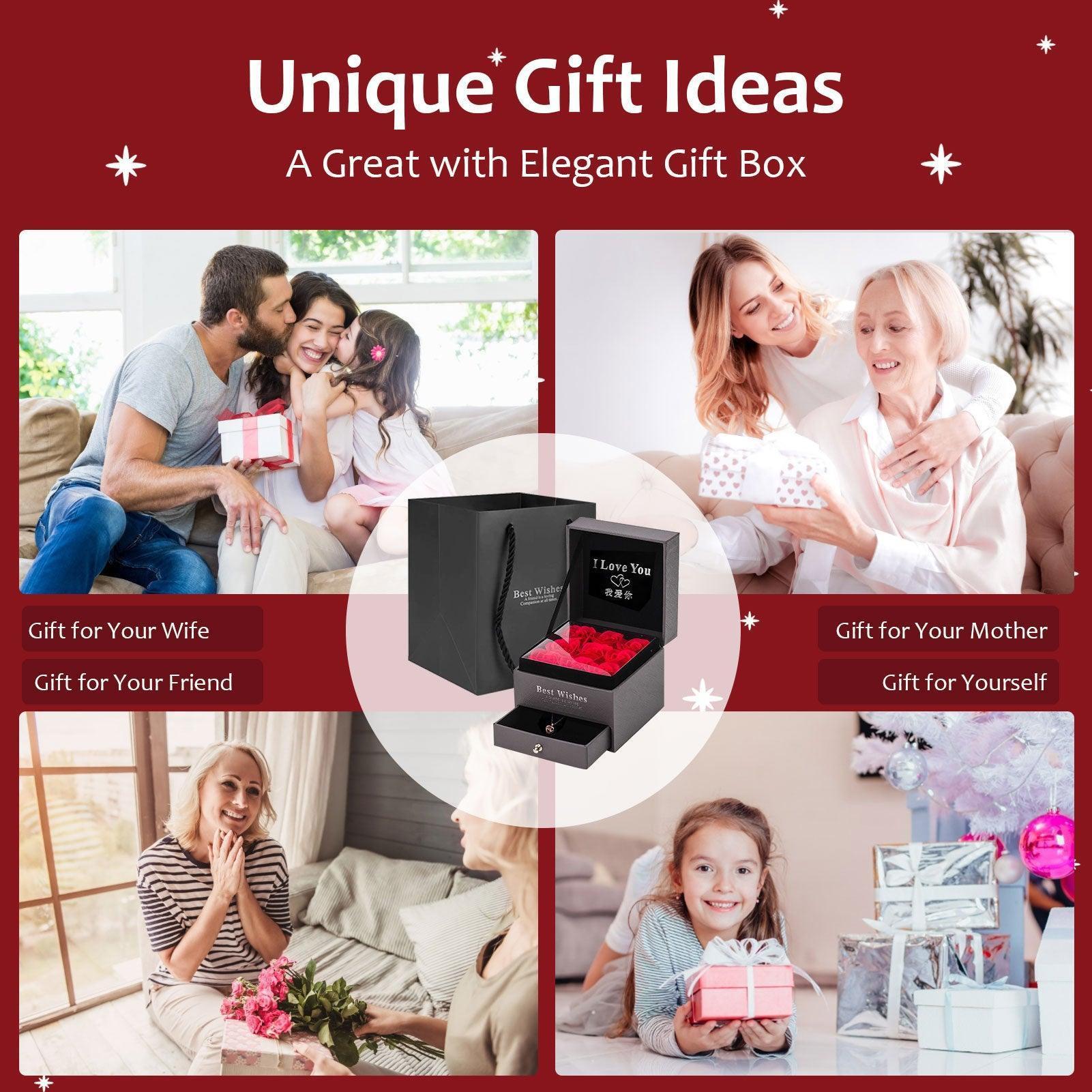 • Complete Gift Package: This set comes with a charming flower box, a touching love message card, and an elegant outer packaging gift box, making it perfect for gifting.