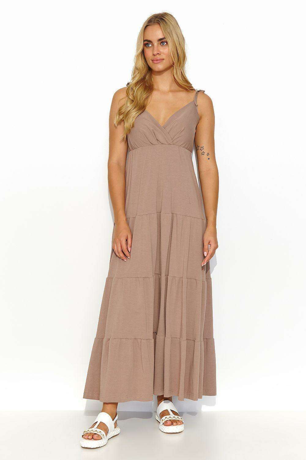 Experience the epitome of elegance and femininity with the Golden Sunlight Romance Maxi Gown. This long summer dress is designed to captivate and enchant, featuring segments that mimic subtle ruffles for a delightful touch of romance.