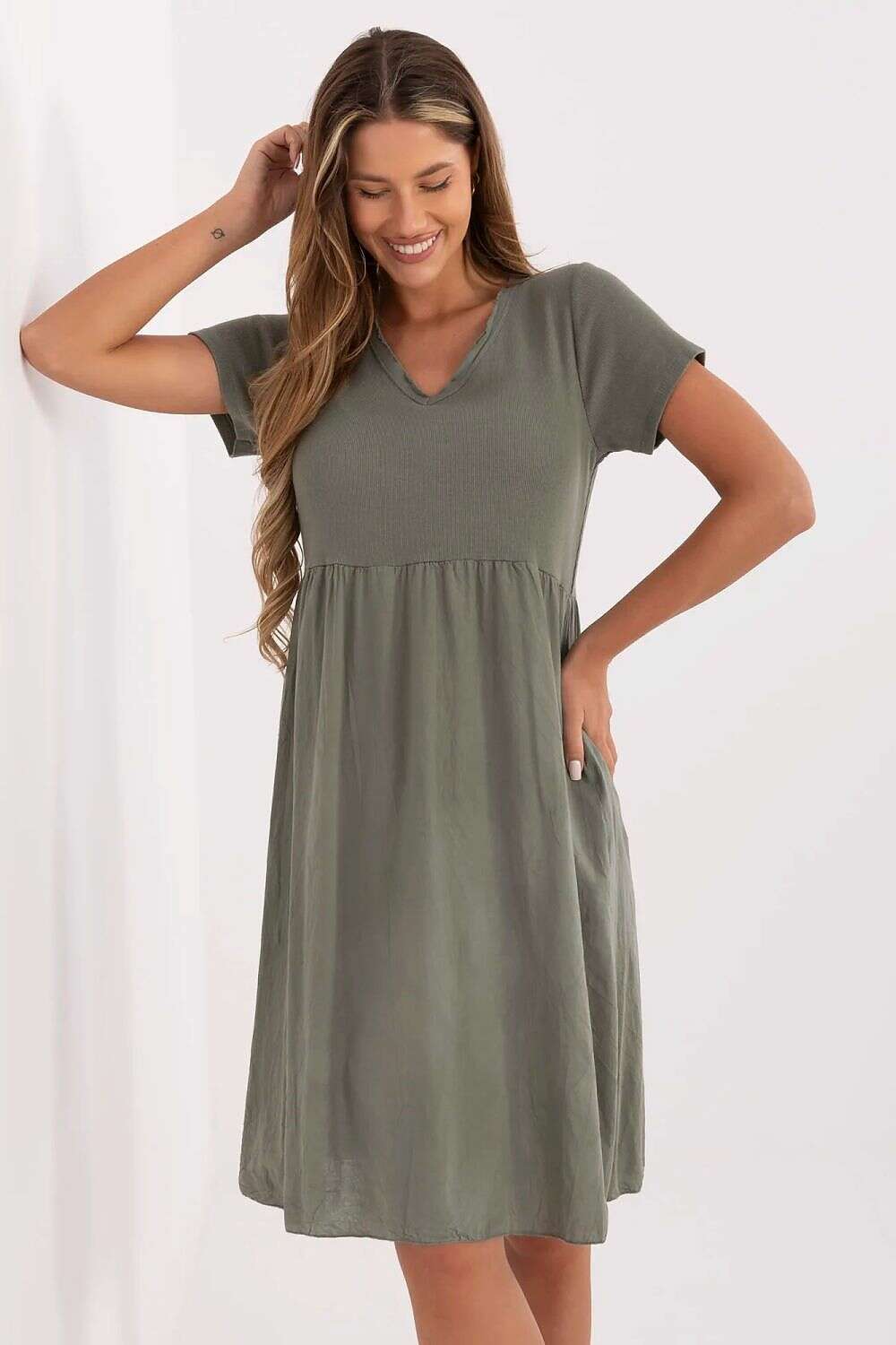 Green Daydress Model 213786 Lightweight Flared Dress