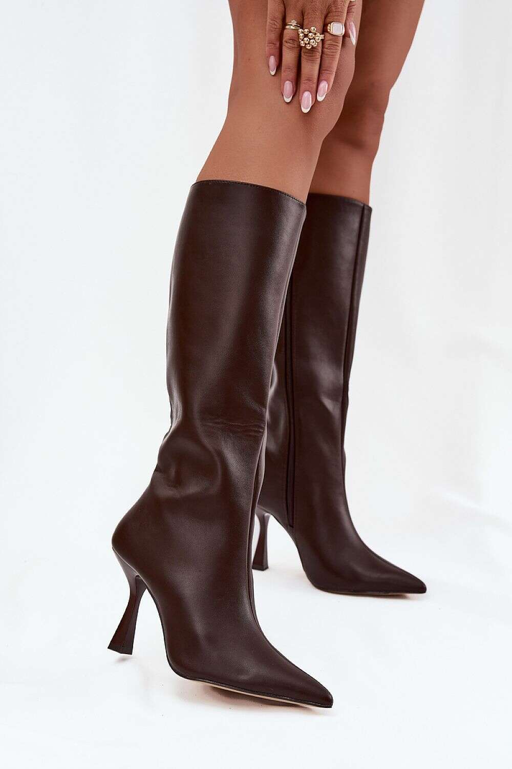 Step into the spotlight with our stunning Heel Boots Model 217519, crafted from eco-friendly leather that merges sustainability with style. Designed to flatter, these boots feature a sleek, pointed toe and a high stiletto heel that enhance your silhouette, while the knee-high shaft beautifully elongates your legs. Effortlessly chic and undeniably elegant, they are the perfect companion for evening outings and sophisticated occasions—because every woman deserves to feel empowered and fabulous.