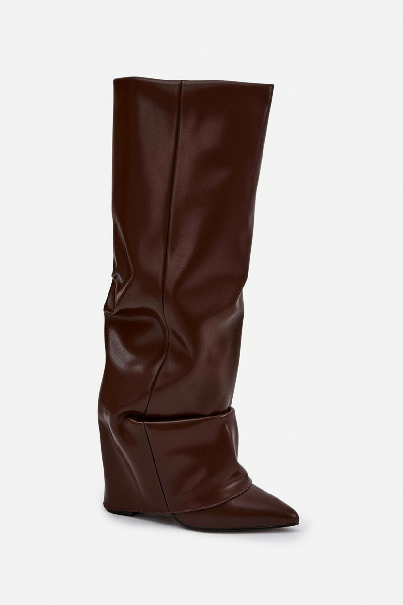 Refine your winter wardrobe with these rolled upper heeled boots, crafted for both comfort and standout style. Designed to keep you warm while enhancing any outfit.
