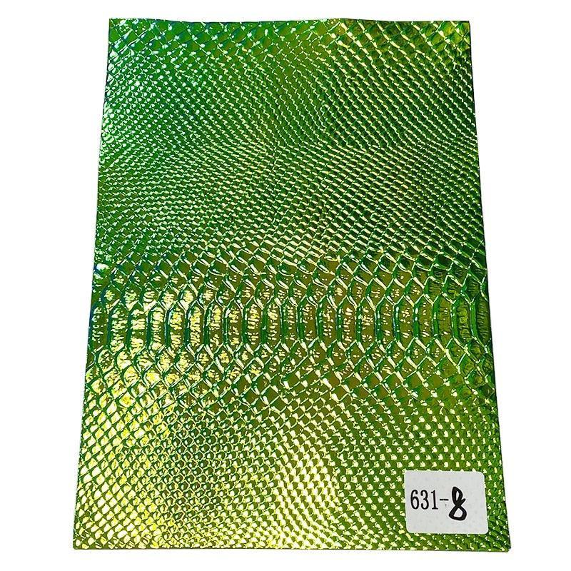 Transform your ideas into stunning realities with this high-quality faux leather crafting sheet. Made from holographic spunlace fabric, it features a mesmerizing snake skin grain embossed texture that adds a touch of sophistication to any project. Whether you're creating fashionable pieces or unique accessories, this versatile material is perfect for: