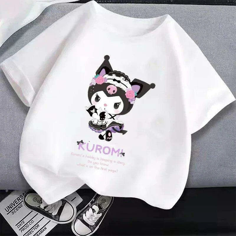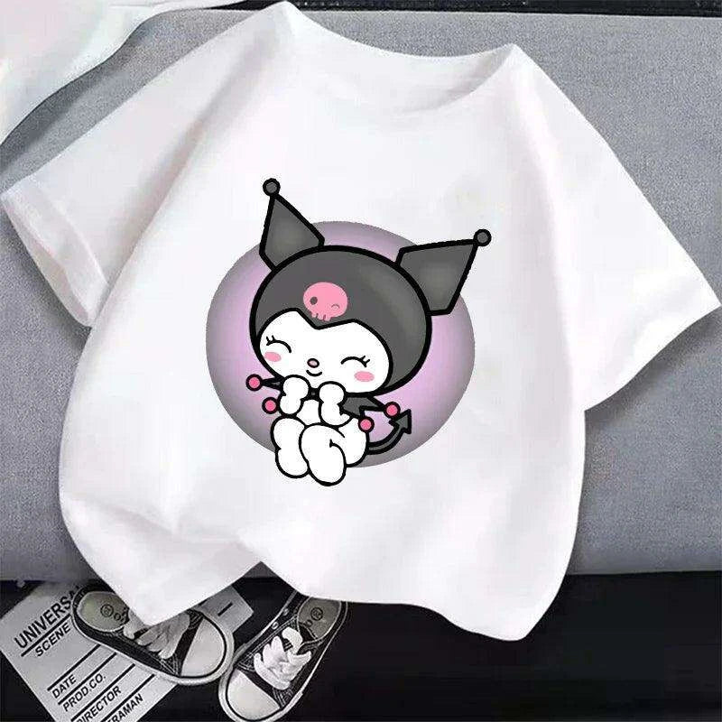 Kuromi Kids' Cartoon Tee: Festive Monochrome Clothing Choice