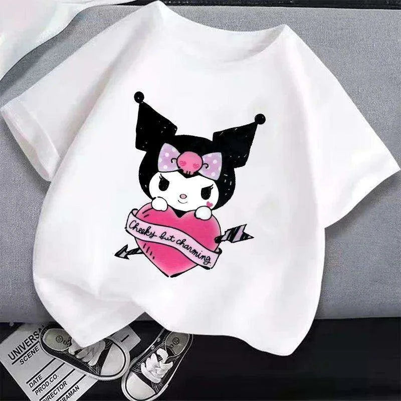 Bring a touch of playful style to your child's wardrobe with the Kuromi Kids' Cartoon Tee. This festive monochrome t-shirt combines the enchantment of a beloved character with the comfort kids need, making it the perfect addition for any occasion.