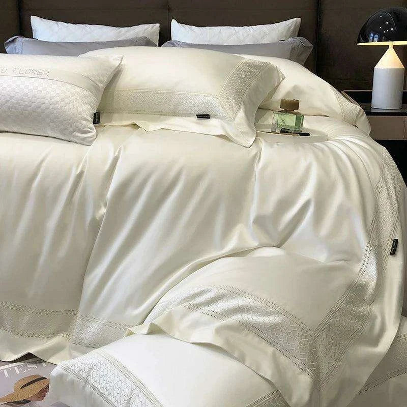 Luxurious 1000TC Egyptian Cotton Embroidered Bed Linen Set - Includes Duvet Cover, Sheet & Pillowcases for King & Queen Sizes